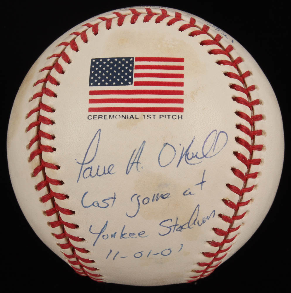 Paul O'Neill Signed LE 2001 World Series Baseball Inscribed "Last Game at Yankee Stadium 11-01-01" (JSA COA)