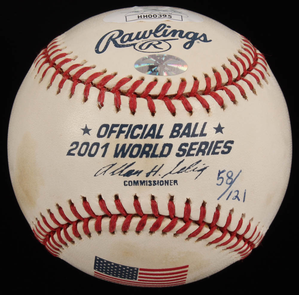 Rawlings 2001 World Series Baseball has been hand-signed in blue ink pen by Paul O'Neill. (New York Yankees) Baseball is limited edition #58 / 121.