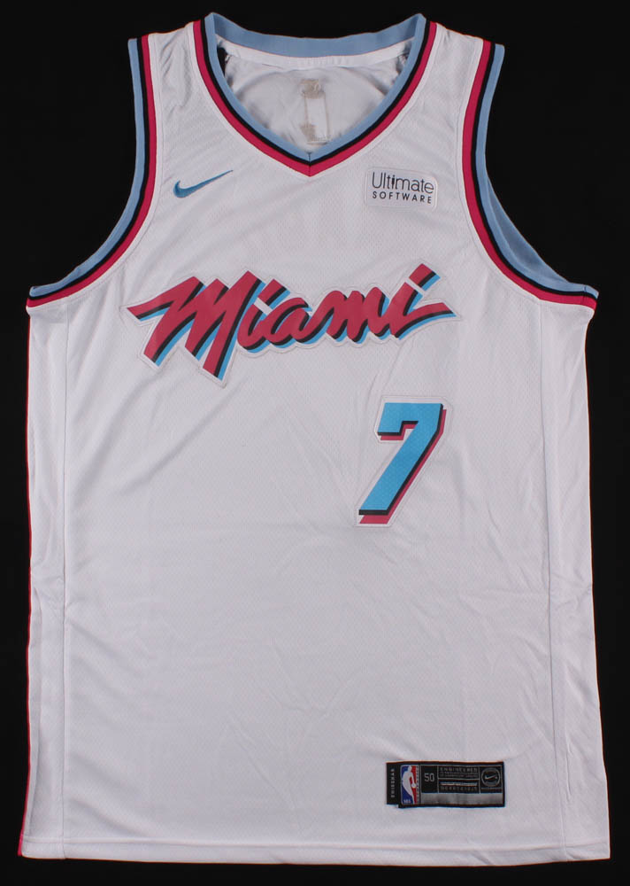 Nike on field style jersey. Everything sewn on, size 50. Hand signed in black felt tip pen by Goran Dragic (Miami Heat).