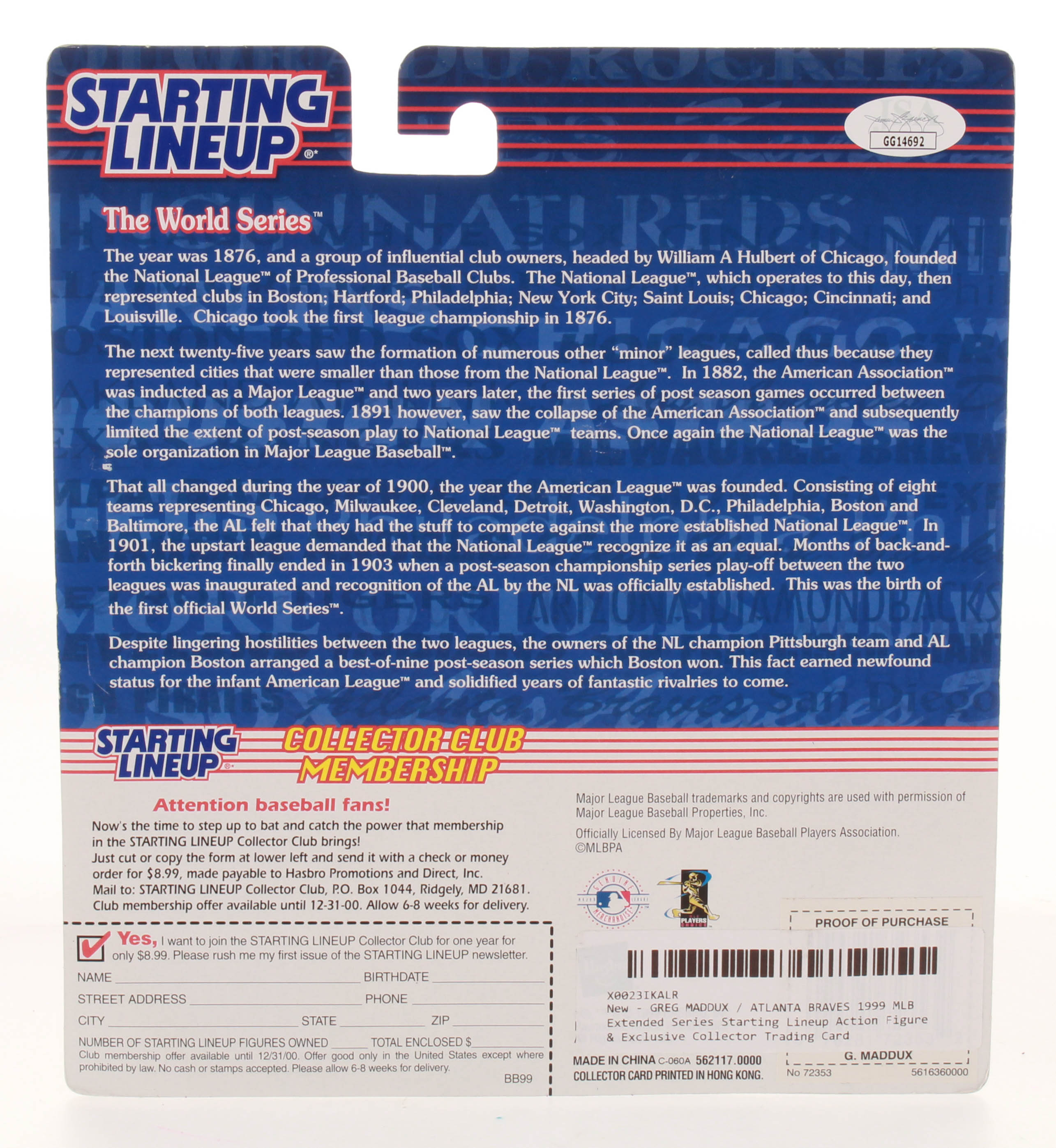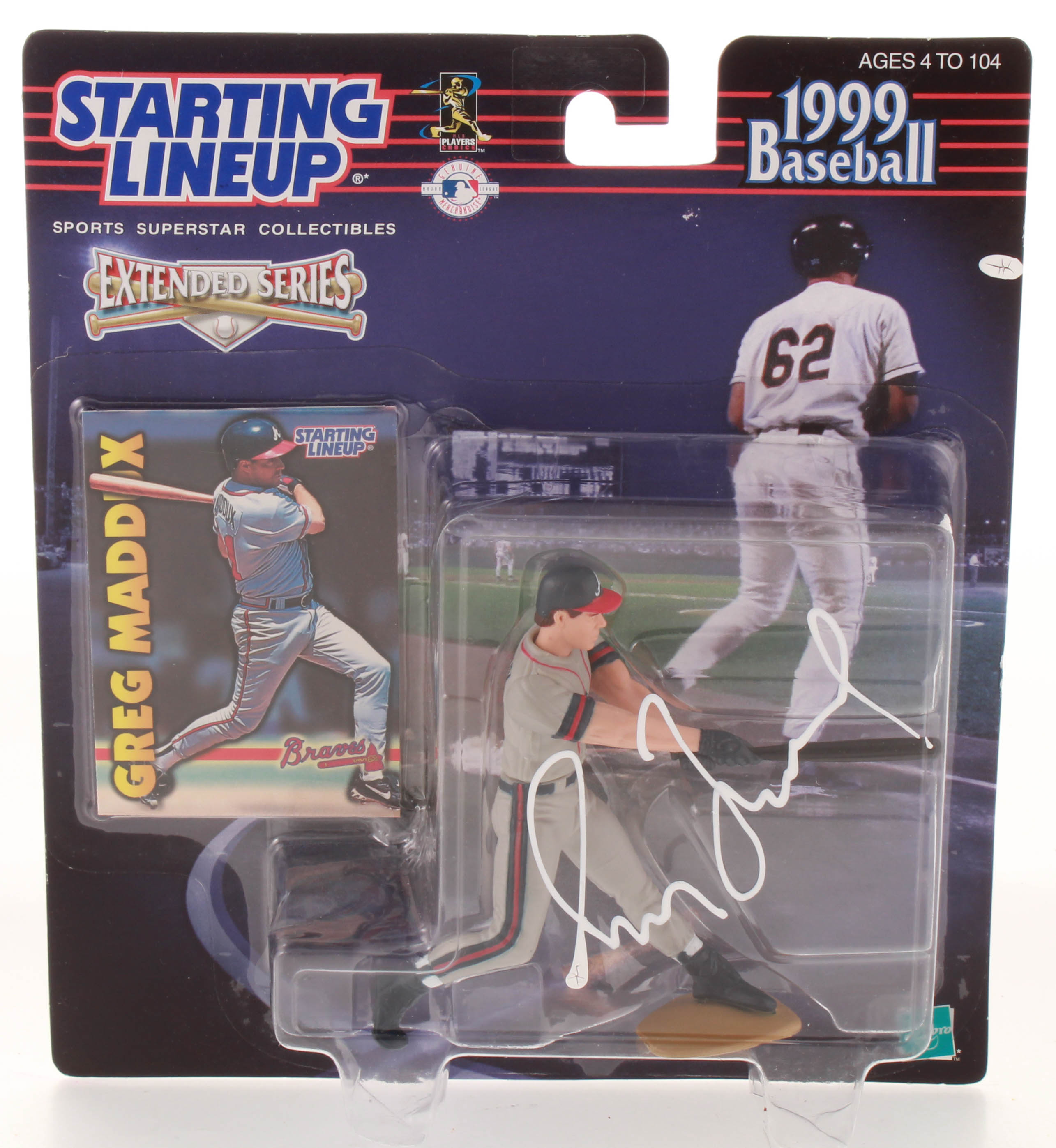 1999 Baseball Starting Line Up Figurine has been hand-signed in white paint pen on the packaging by Greg Maddux. (Atlanta Braves, HOF)