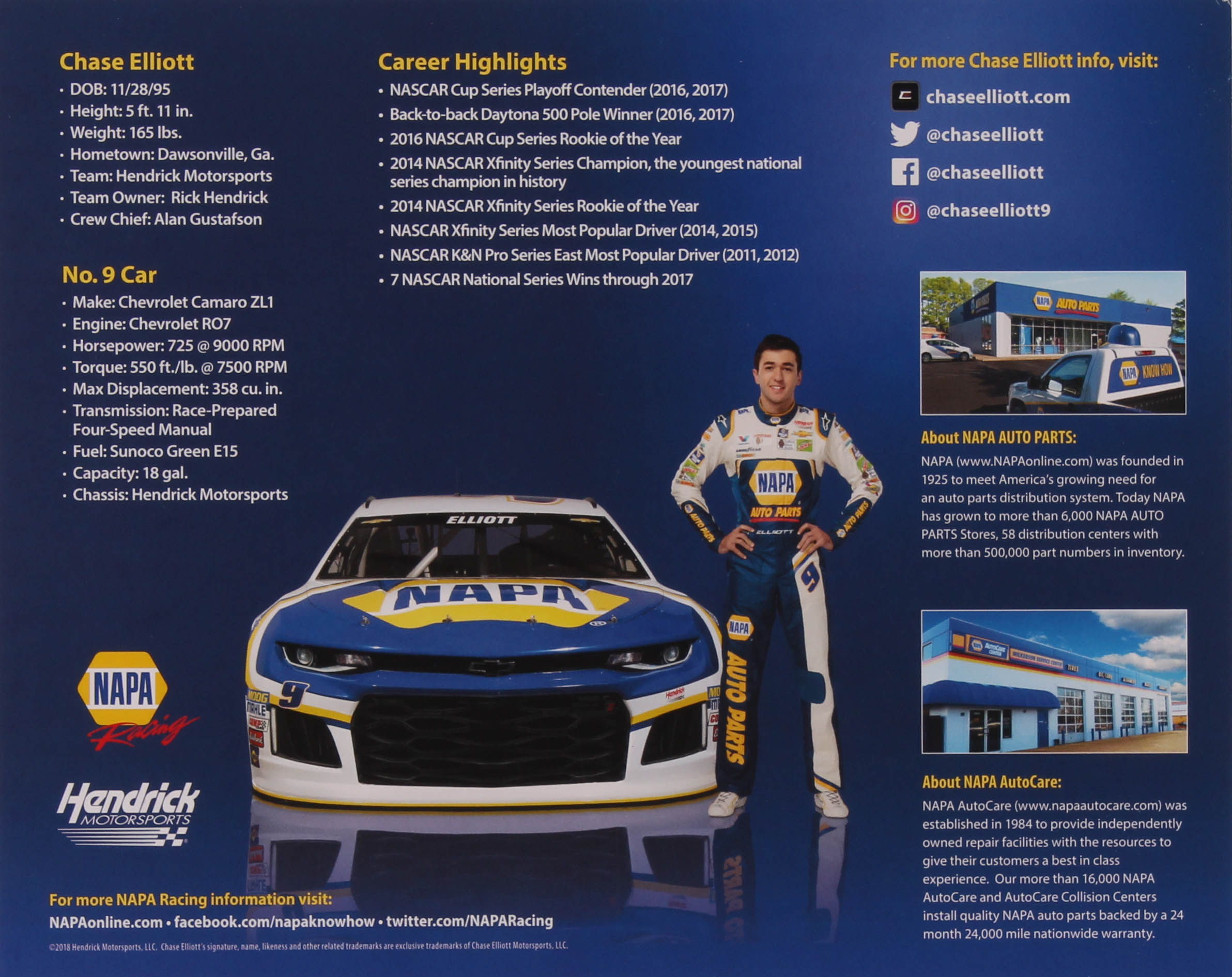 Chase Elliott Signed 8x10 Photo Card (JSA COA)