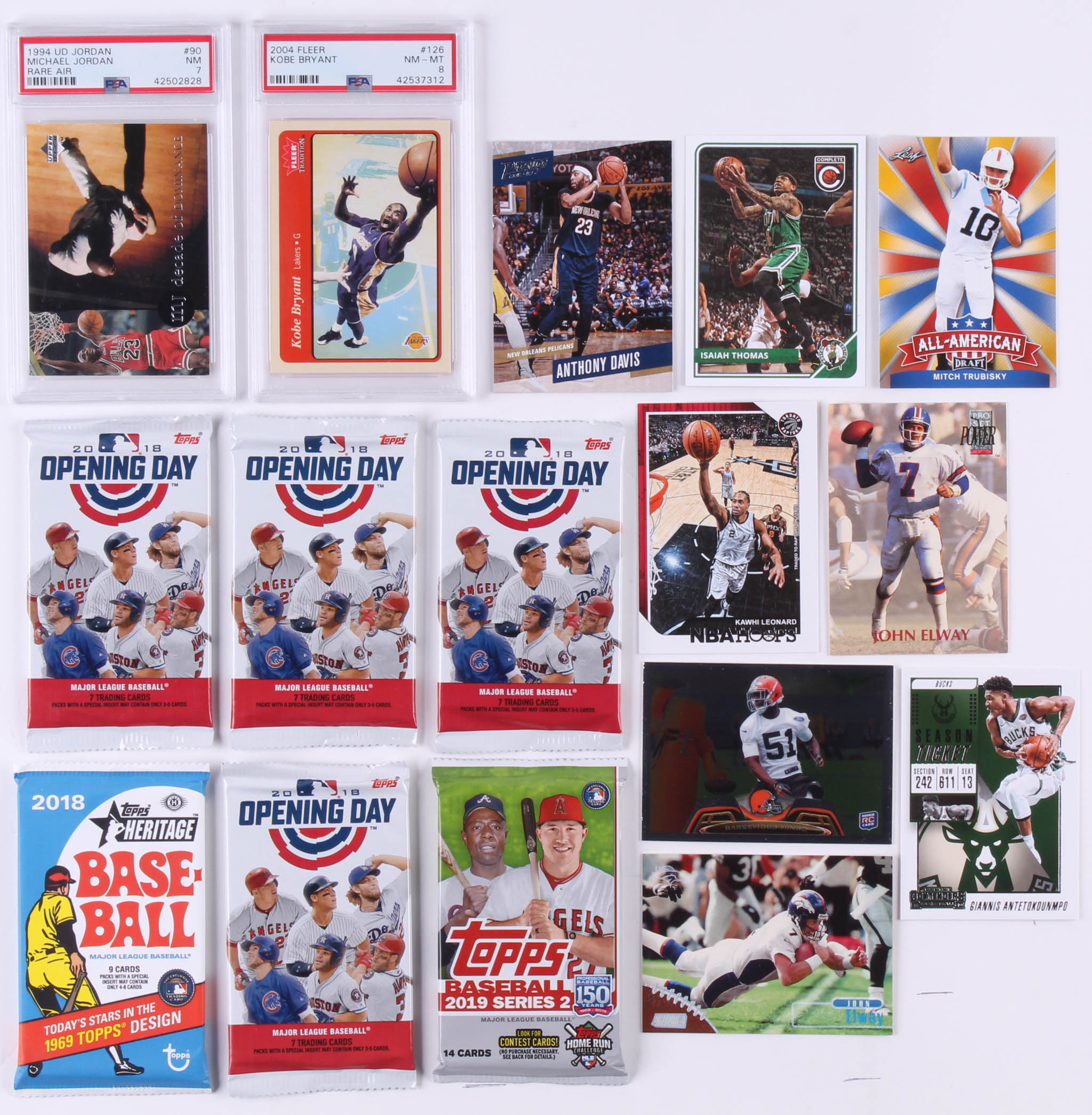 Lot includes all (61) sports cards shown. (2) cards have been graded (PSA 7 and 8). (6) unopened card packs with (4) 2018 Topps Opening Day, (1) 2018 Topps Heritage, and (1) 2019 Topps Series 2. Please see photos for details regarding the cards.