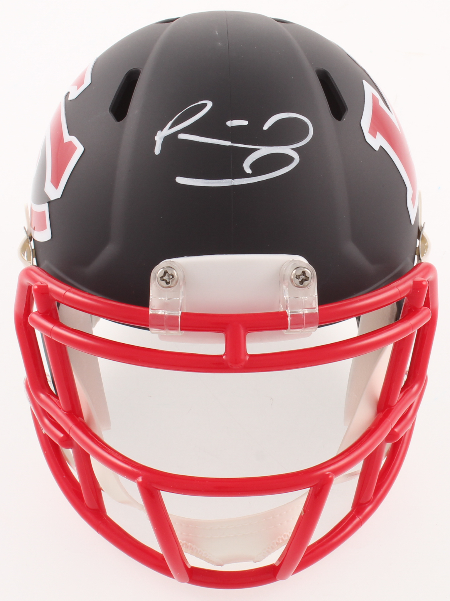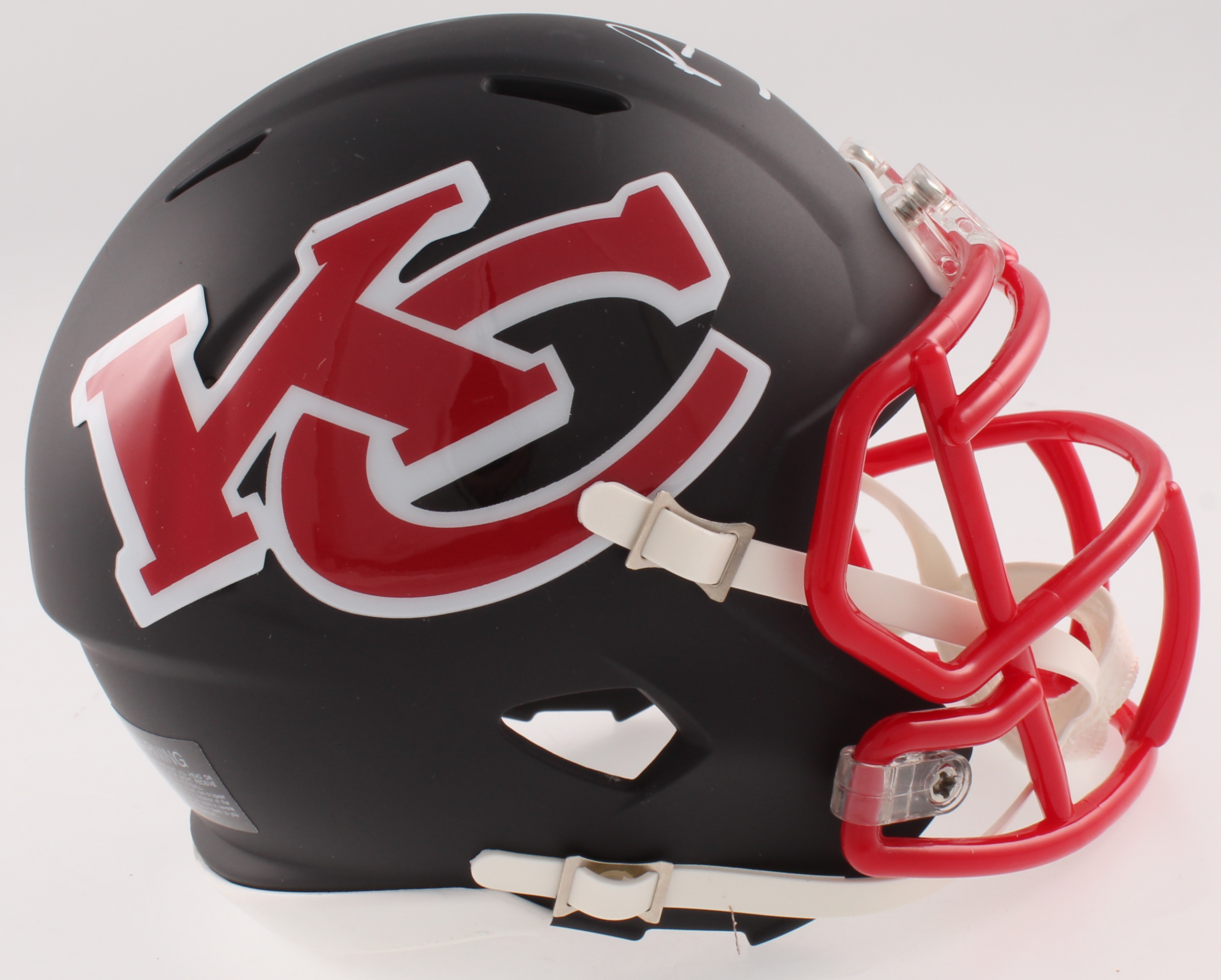 Riddell Kansas City Chiefs AMP Alternate speed mini helmet. Has been hand-signed in white paint pen by Patrick Mahomes.