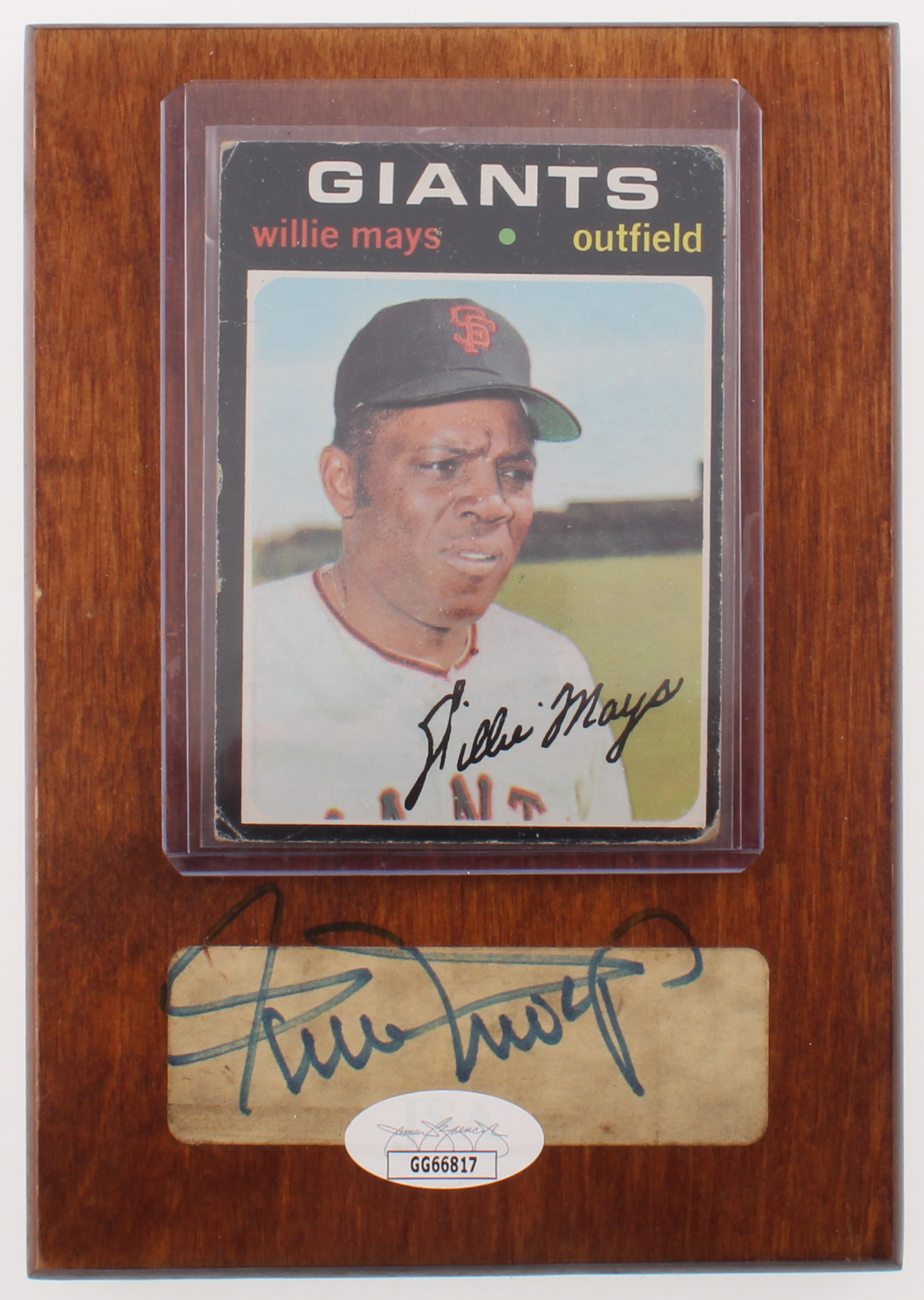 Willie Mays Signed Giants 4.5x6.5 Custom Card Wooden Plaque Display (JSA COA)