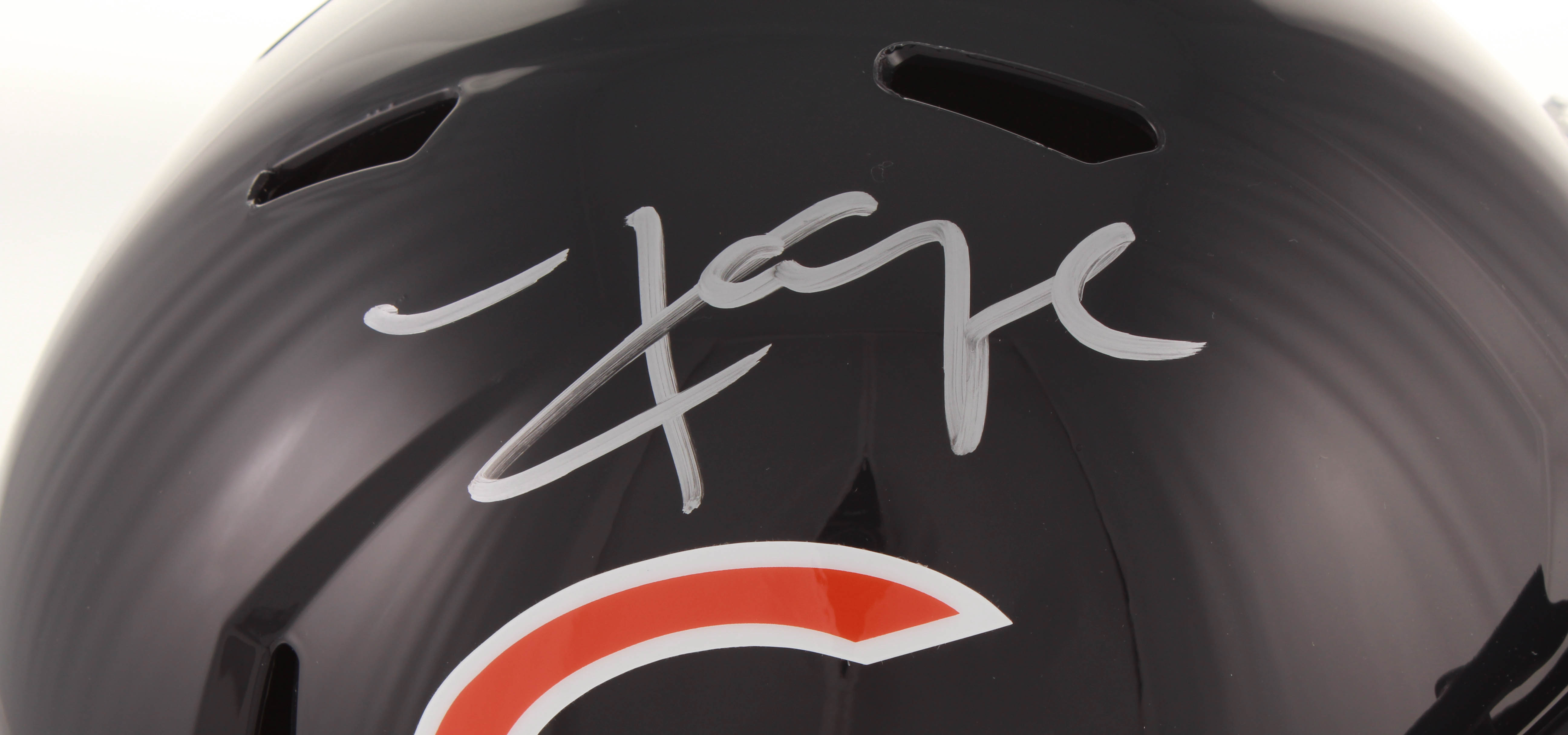 Riddell Chicago Bears full-size replica speed helmet. Has been hand-signed in silver paint pen by Khalil Mack.