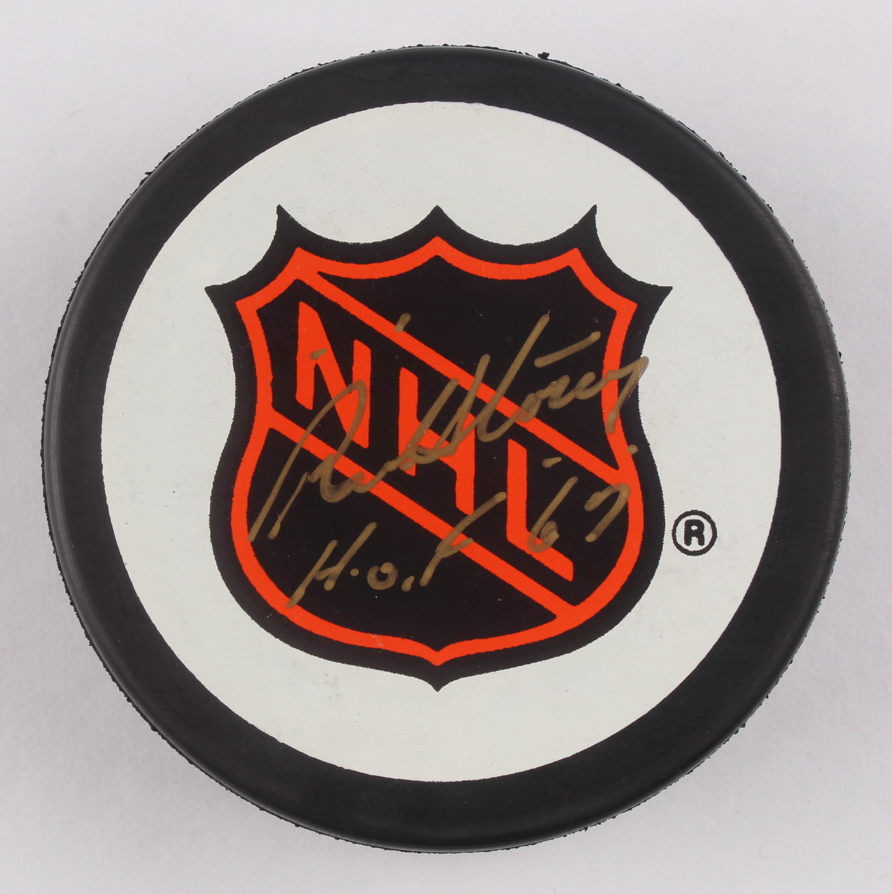 Red Storey Signed NHL Logo Hockey Puck Inscribed "H.O.F. 67" (Beckett COA)