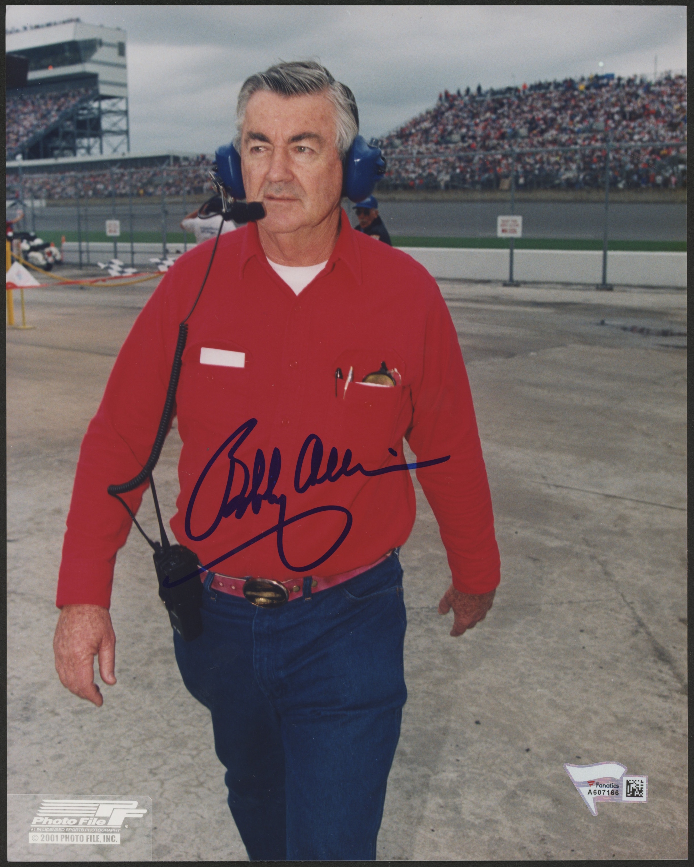 Photo measures 8" x 10" in size and is hand-signed in blue felt-tip pen by Bobby Allison.