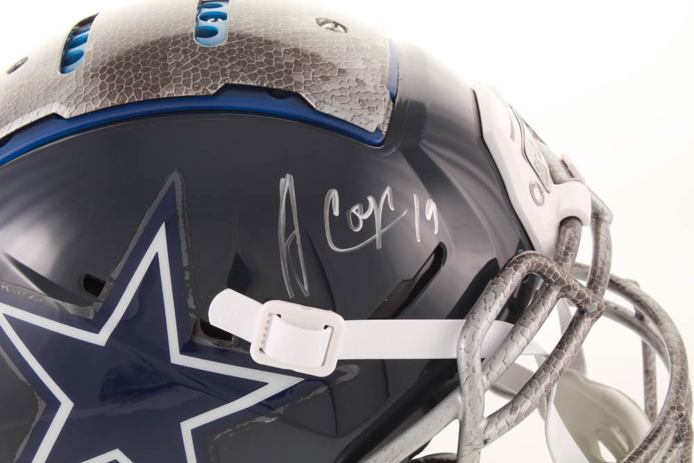 Schutt Dallas Cowboys full-size authentic on-field hydro dipped F7 helmet. Hand-signed in silver paint pen by Amari Cooper