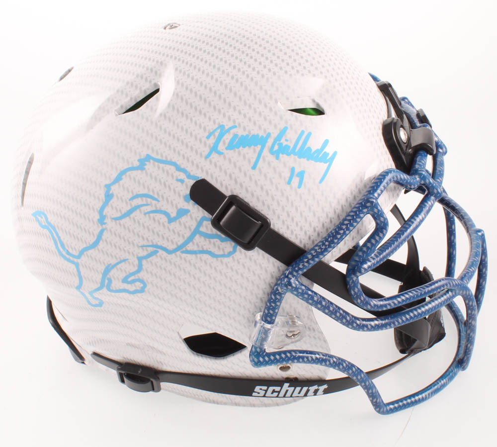 Schutt Detroit Lions full-size replica hydro dipped vengeance helmet. Hand-signed in blue paint pen by Kenny Golladay.