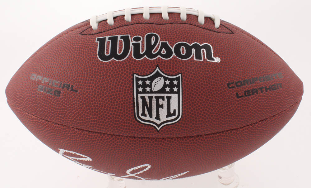 Wilson Official NFL Football. Has been hand-signed in silver paint pen by Barry Sanders (Detroit Lions, HOF).