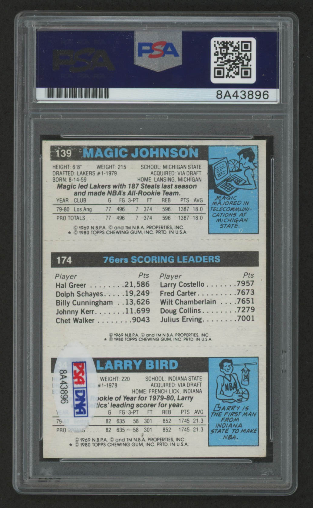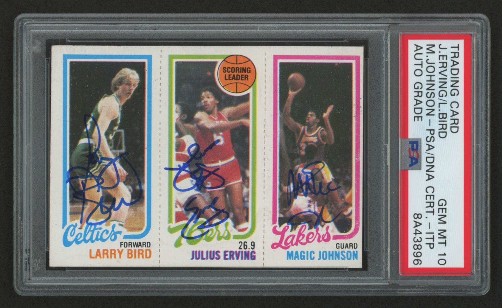 Larry Bird, Julius Erving & Magic Johnson Signed 1980-81 Topps #6 RC (PSA Encapsulated)