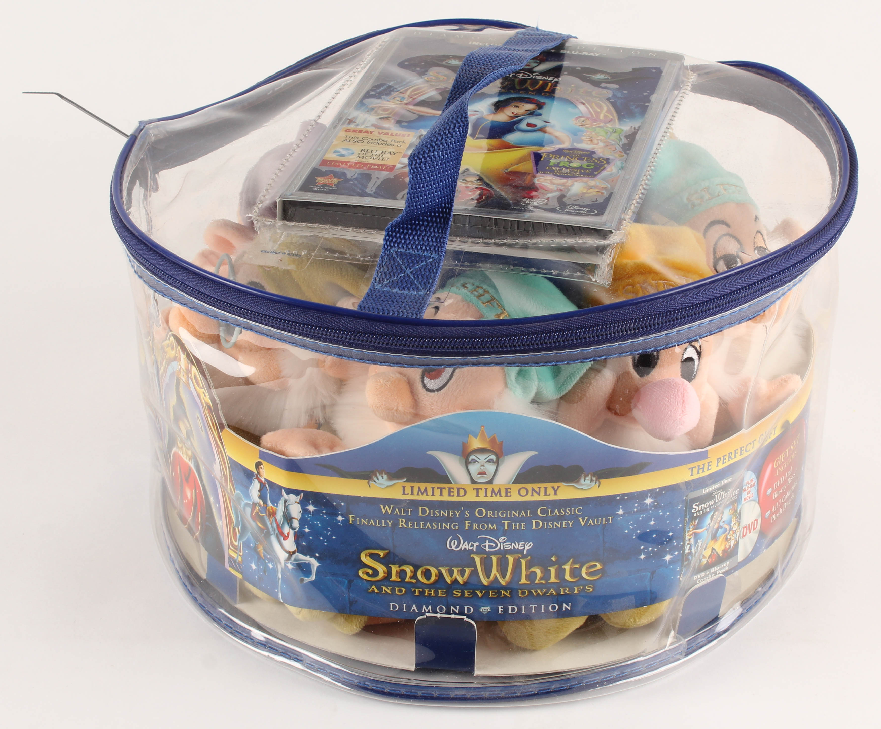 Walt Disney's "Snow White and the Seven Dwarfs" Limited Edition Collectible Toy Plush Diamond Edition Set includes includes all (7) dwarfs plush toys and (1) DVD disc and (1) Blue Ray disc. The set is limited edition. Please see images for details regarding the condition of the set.