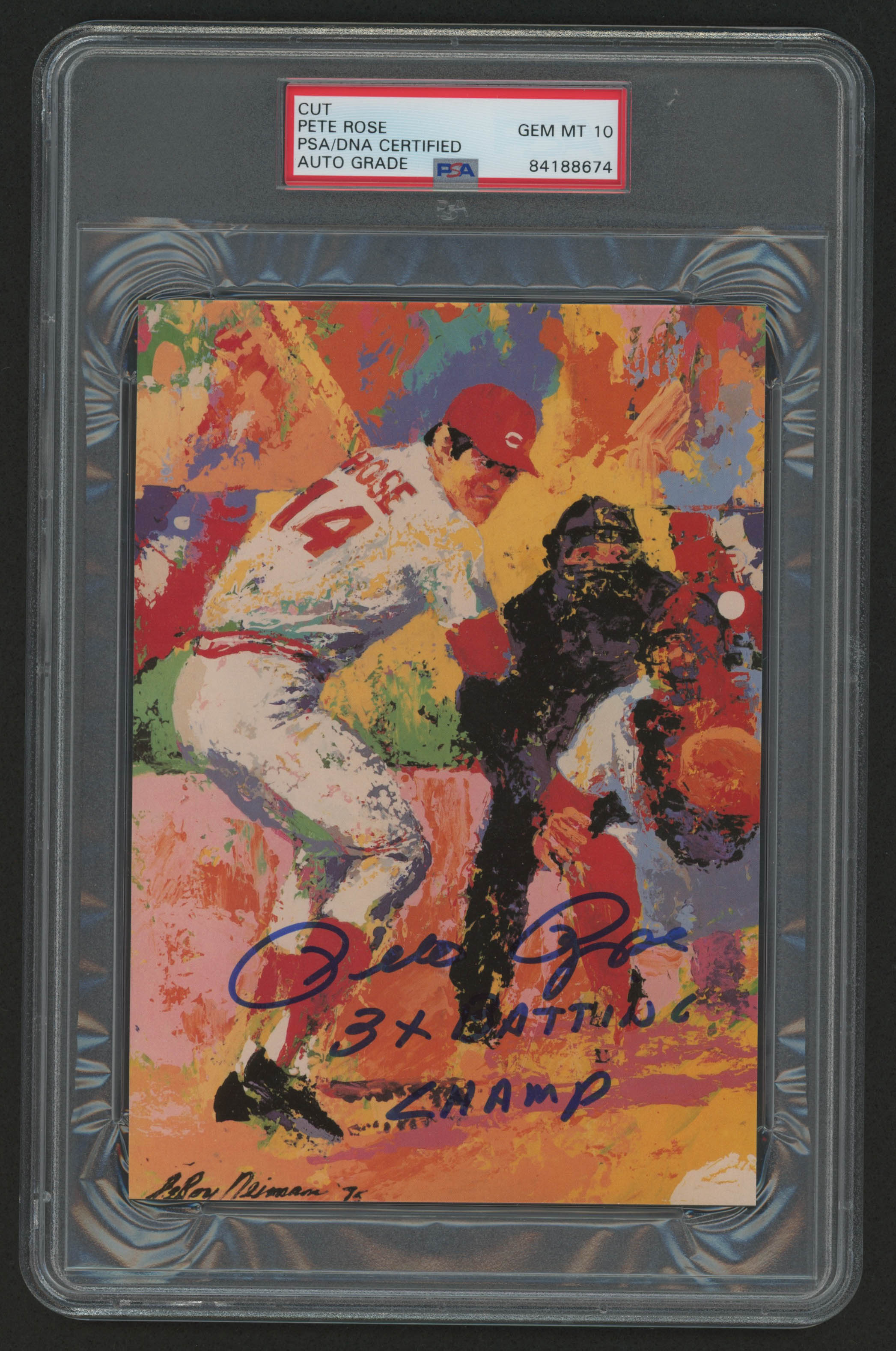 Pete Rose Signed 5x7 LeRoy Neiman Print Inscribed "3x Batting Champ" (PSA Encapsulated)