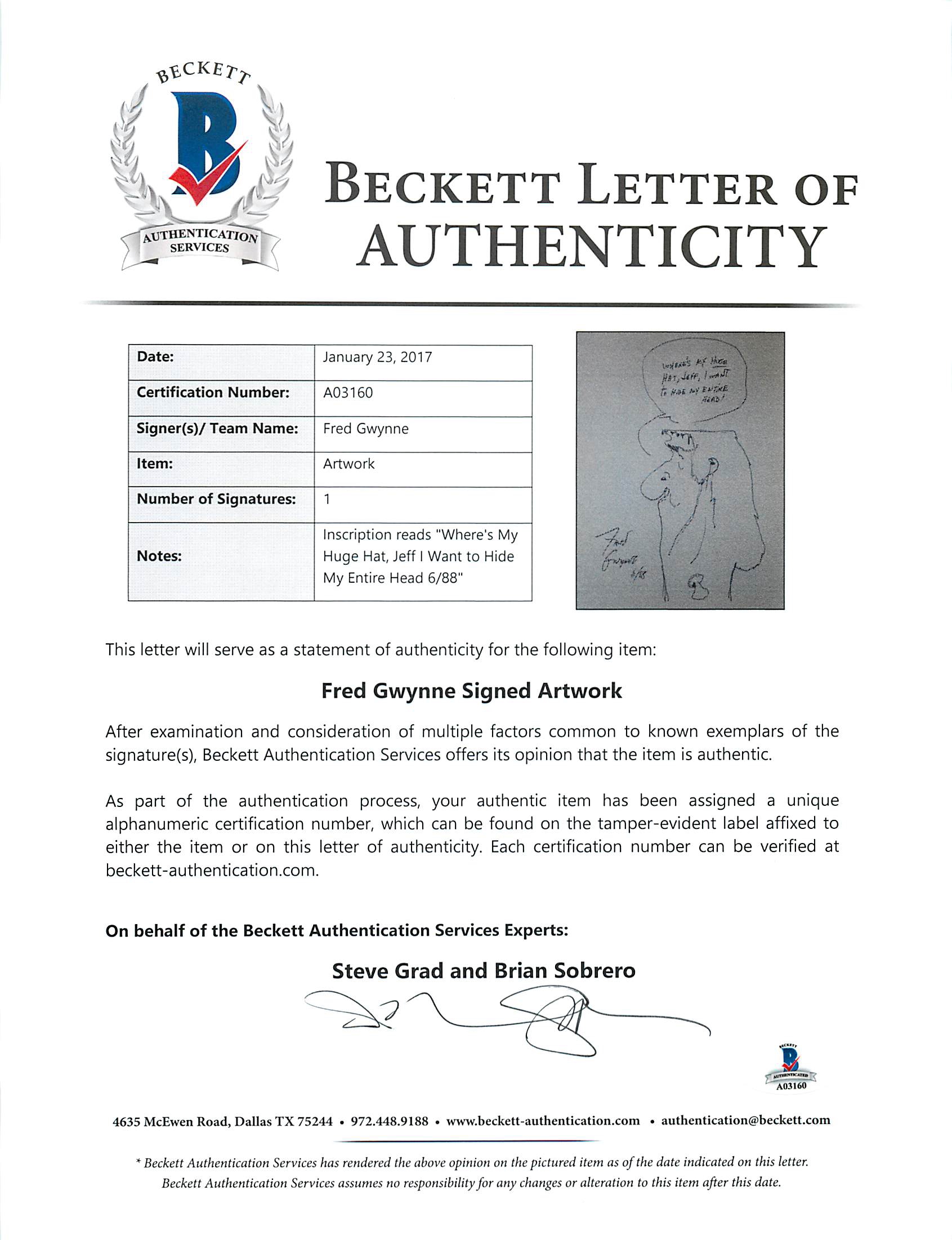 The lot / autograph(s) includes an official Beckett Authentication Services hologram and matching LOA for authenticity purposes.