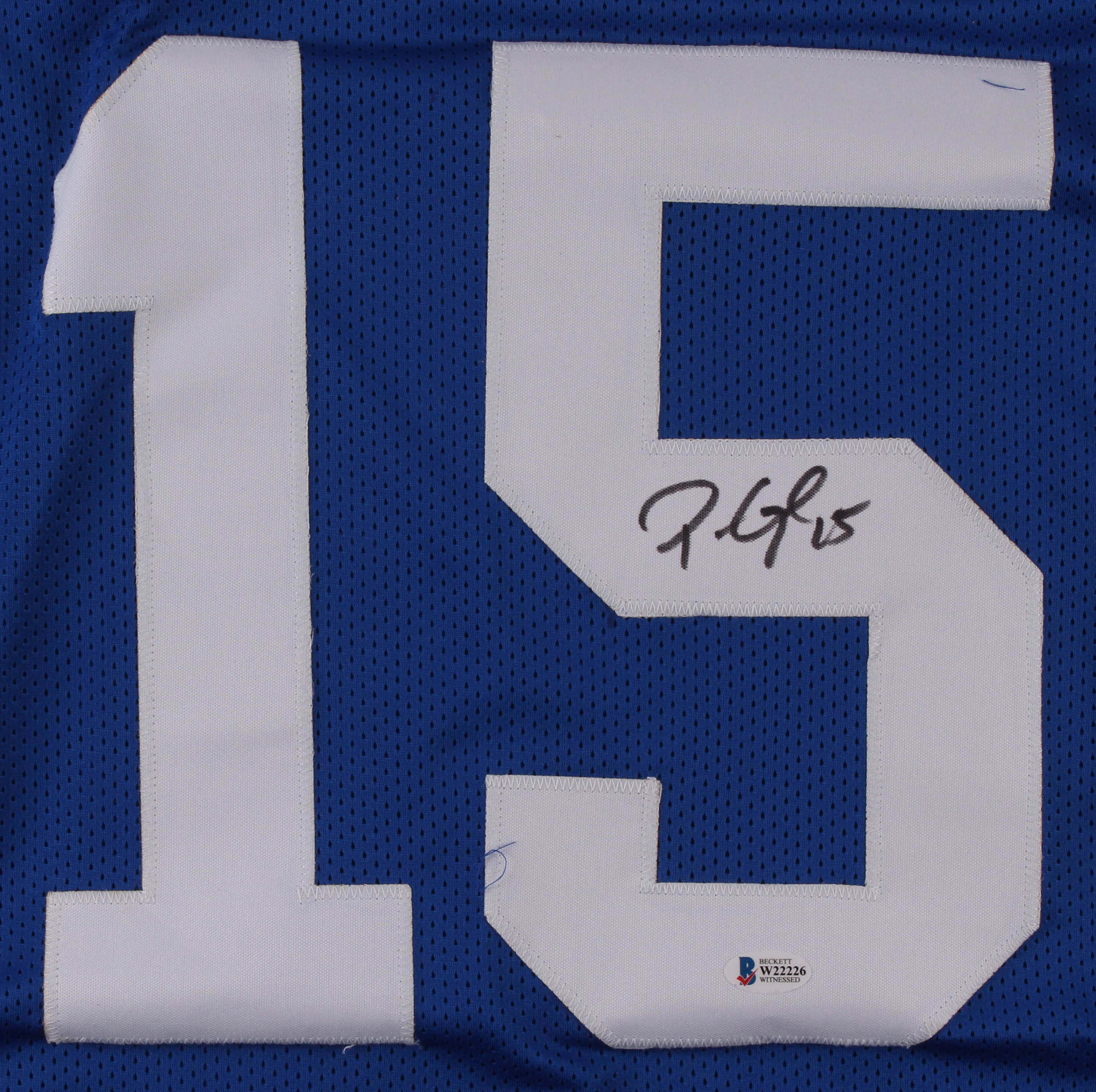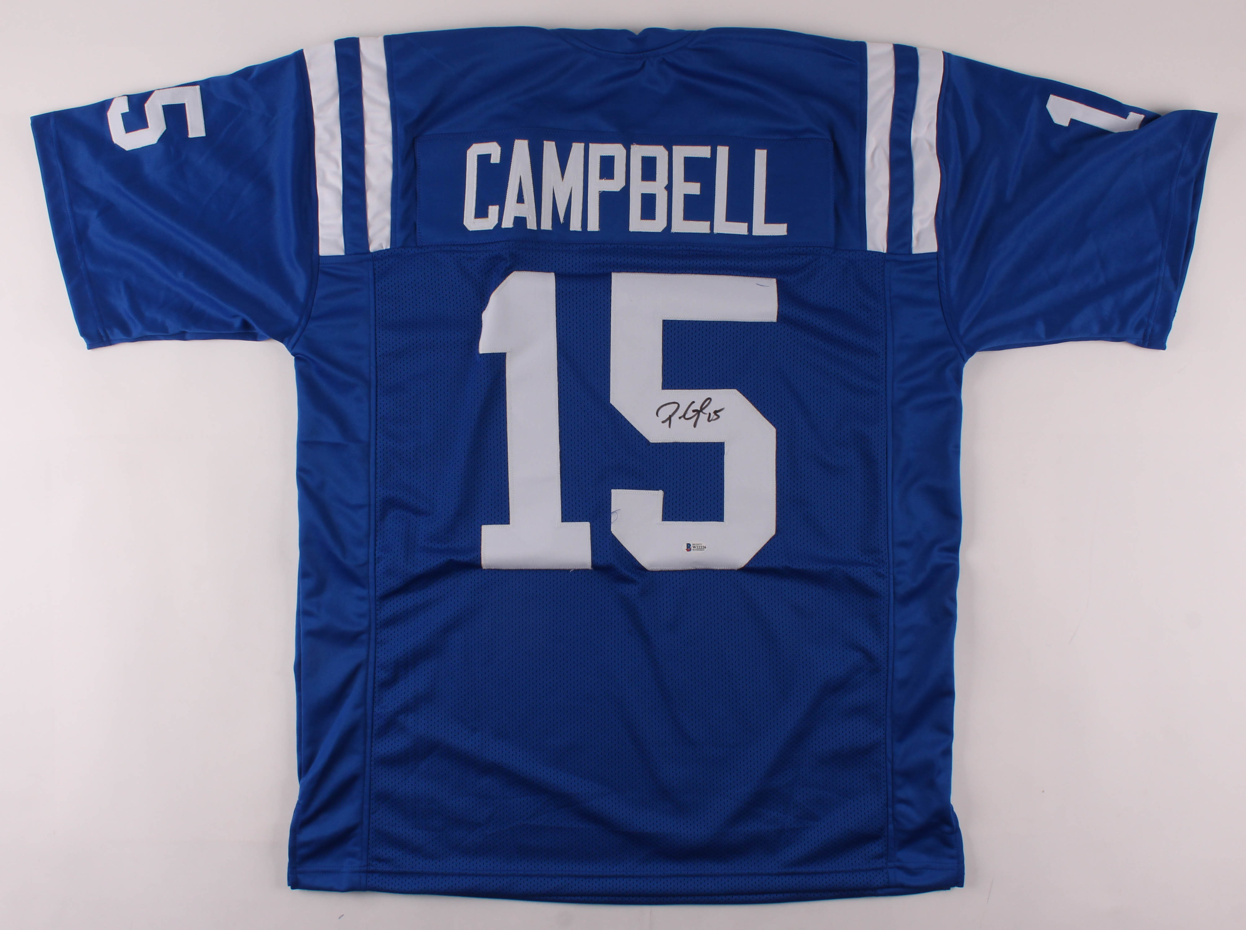 Custom on-field style jersey. Everything is sewn on, size XL. Has been hand-signed in black felt-tip pen by Parris Campbell.