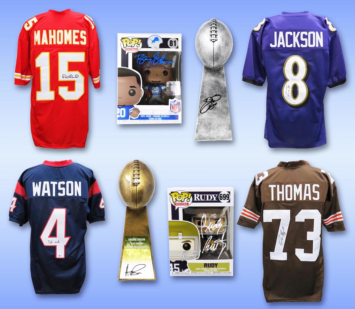 SCORE A TWO-POINT CONVERSION – Random boxes have TWO (2) additional Autographed items (8 Items total!!!) included as a Touchdown Box bonus!!!!!!!