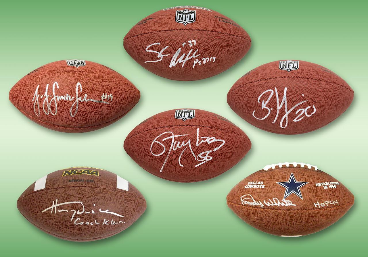 2 Signed Football Flats (8x10s, 16x20s, Encapsulated Cards)