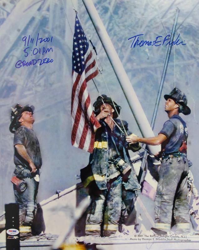 Thomas E. Franklin Signed "Raising the Flag at Ground Zero" 16x20 Photo Inscribed "9/11/2001 5:01 PM" & "Ground Zero" (PSA COA)