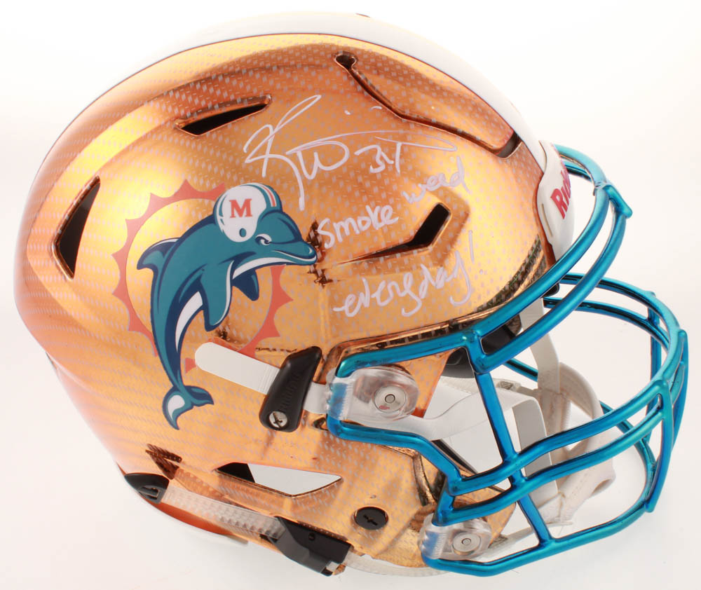 Ricky Williams Signed Dolphins Full-Size Authentic On-Field Hydro-Dipped Chrome SpeedFlex Helmet Inscribed "Smoke Weed Everyday!" (JSA COA)