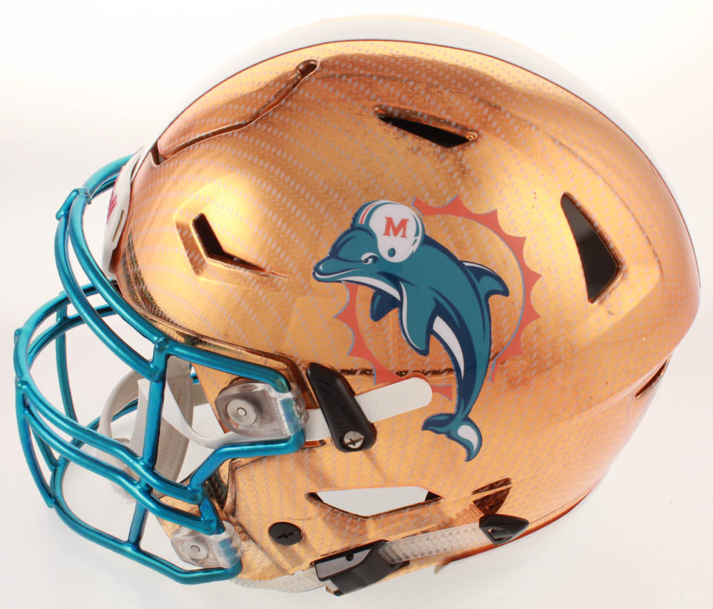 Riddell Miami Dolphins full-size authentic on-field hydro-dipped SpeedFlex chrome helmet. Hand-signed in white paint pen by Ricky Williams.