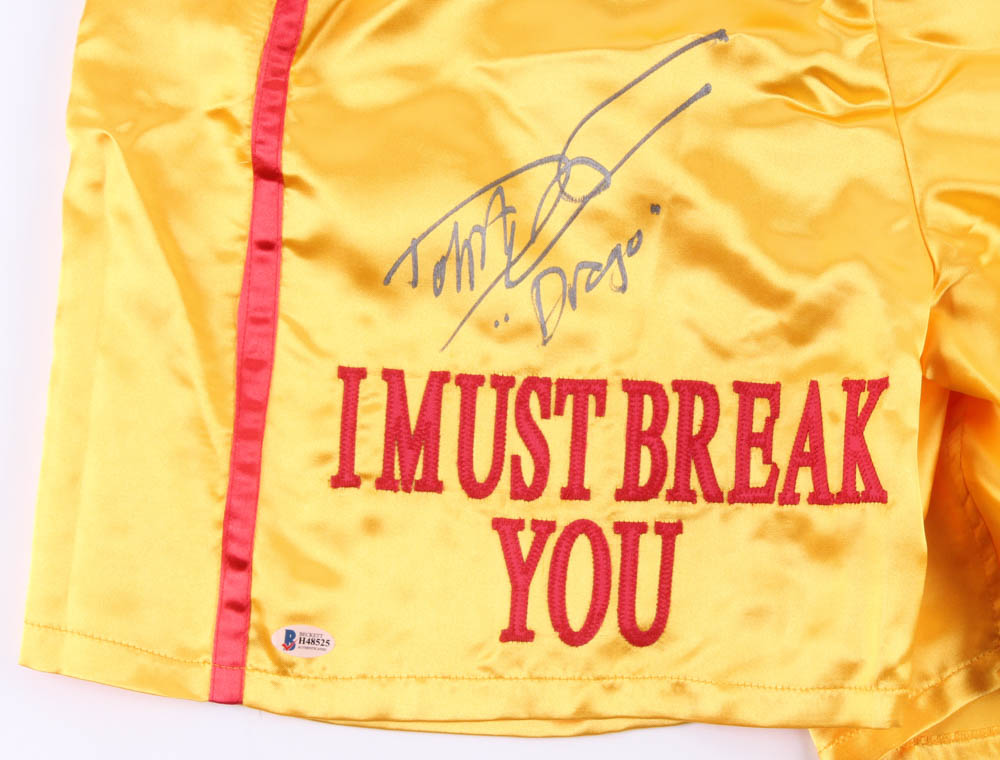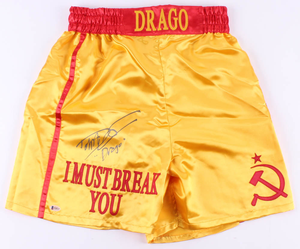 Dolph Lundgren Signed "Rocky IV" Boxing Trunks Inscribed "Drago" (Beckett COA)