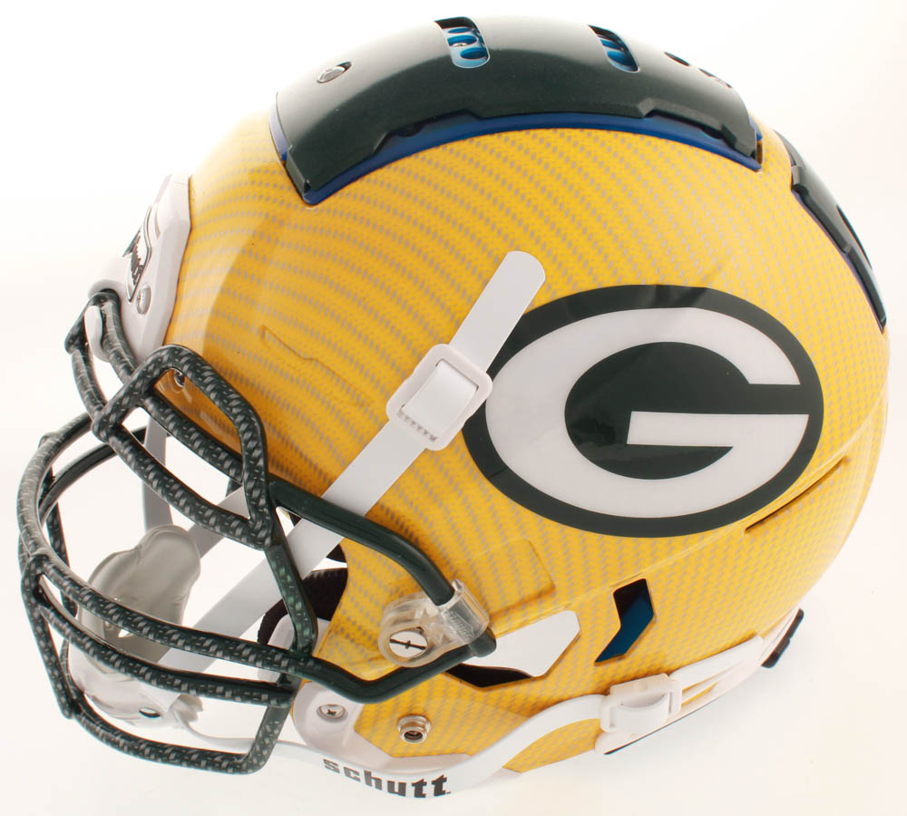 Schutt Green Bay Packers full-size authentic on-field hydro-dipped F7 helmet. Hand-signed in green paint pen by Davante Adams (Green Bay Packers).