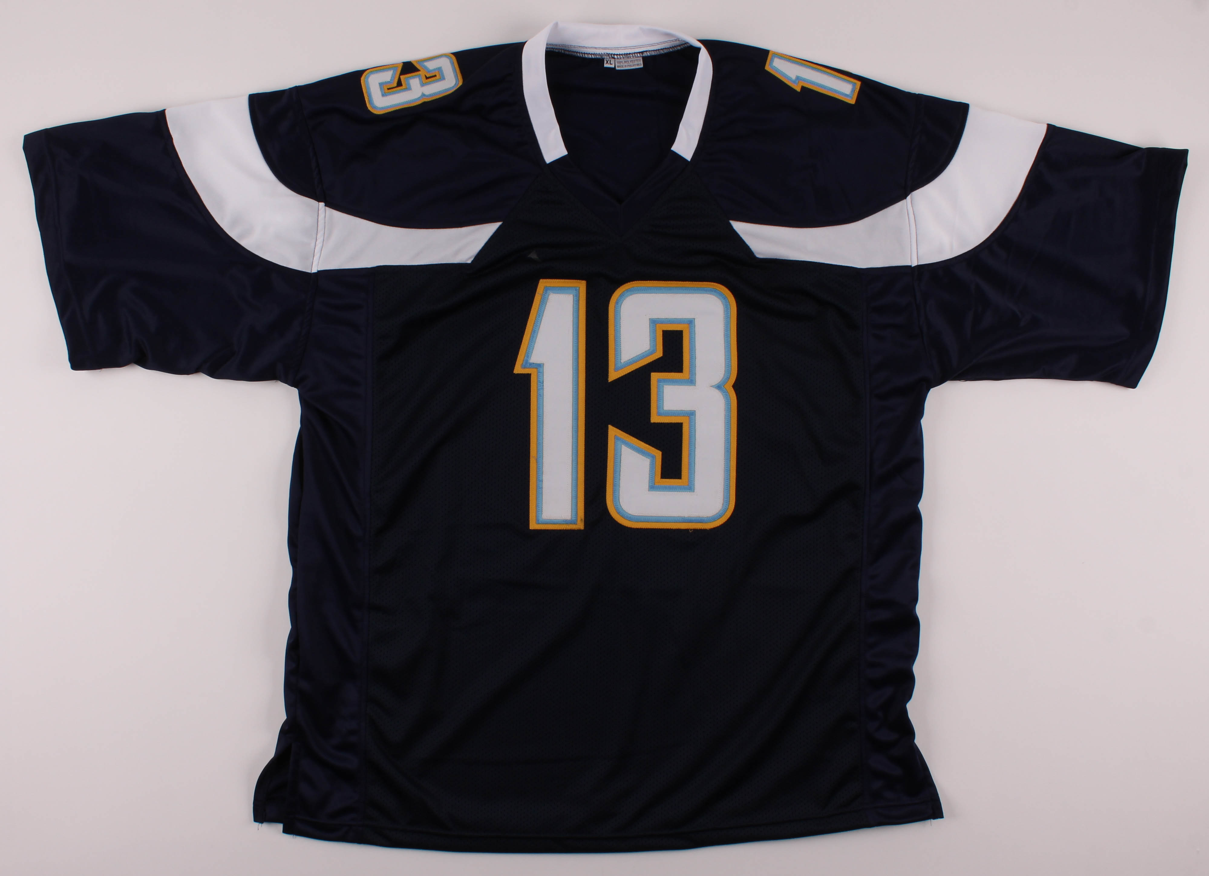 Custom on-field style jersey. Everything sewn on, size XL. Hand-signed in black felt-tip pen by Keenan Allen.