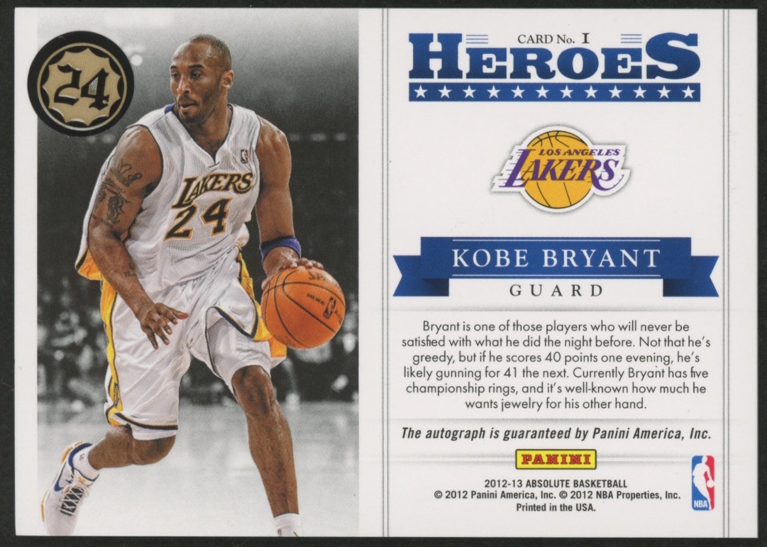 Kobe Bryant 2012-13 Absolute Heroes Autographs #1