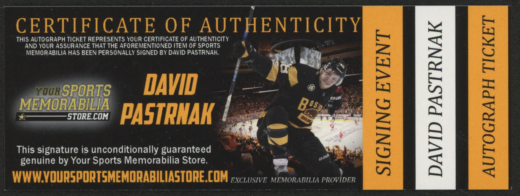 The lot / autograph(s) includes an official Your Sports Memorabilia Store David Pastrnak hologram and COA for authenticity purposes.