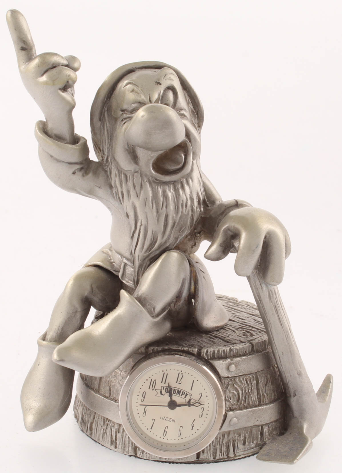 Disney Linden pewter clock measures approximately 4" in height. Clock is limited edition and has been numbered #901/5000. Comes with original packaging. Please note, clock does not function. See images for details regarding the condition of the clock.