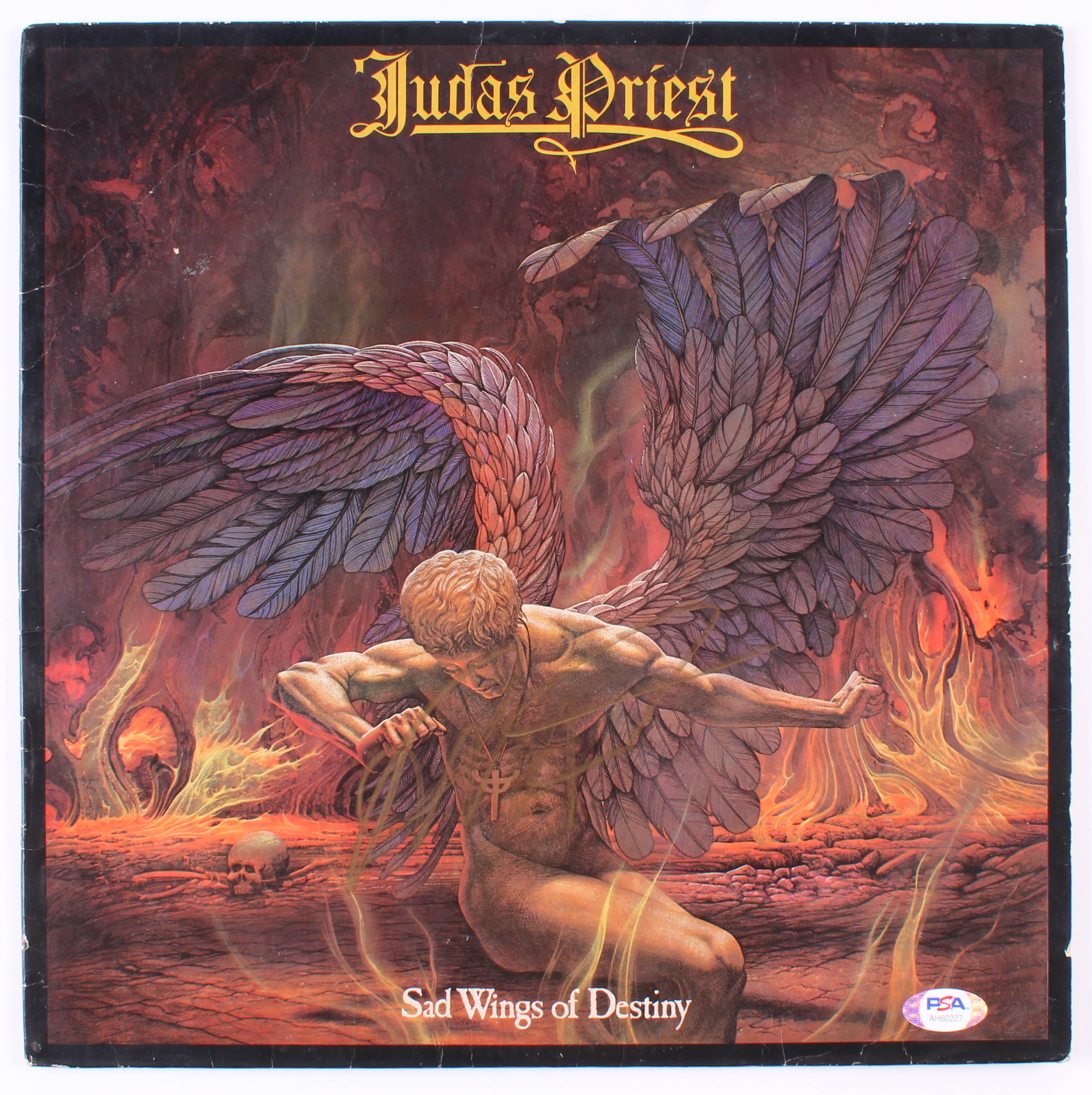 "Sad Wings Of Destiny" vinyl record album has been hand-signed in gold paint pen by Rob Halford. Please note, this comes with the record. Please see images for details regarding the condition of the record.
