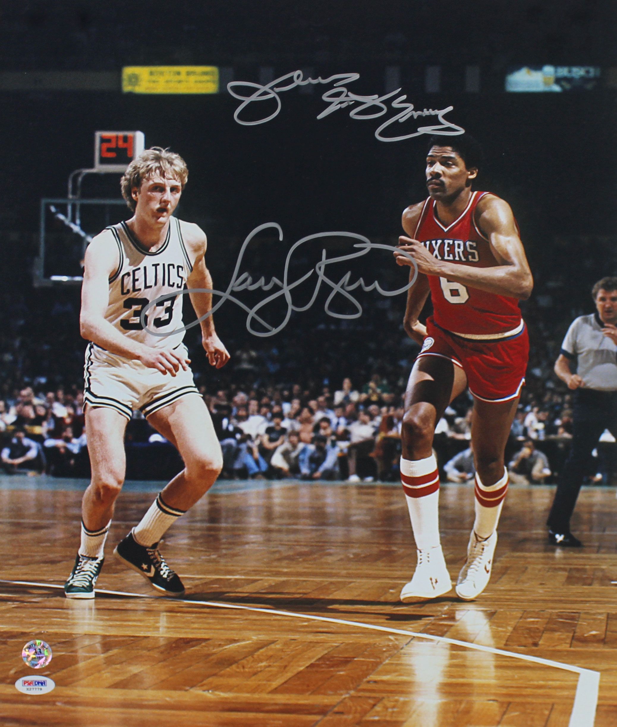 Julius Erving & Larry Bird Signed 8x10 Photo (Bird Hologram & PSA COA)