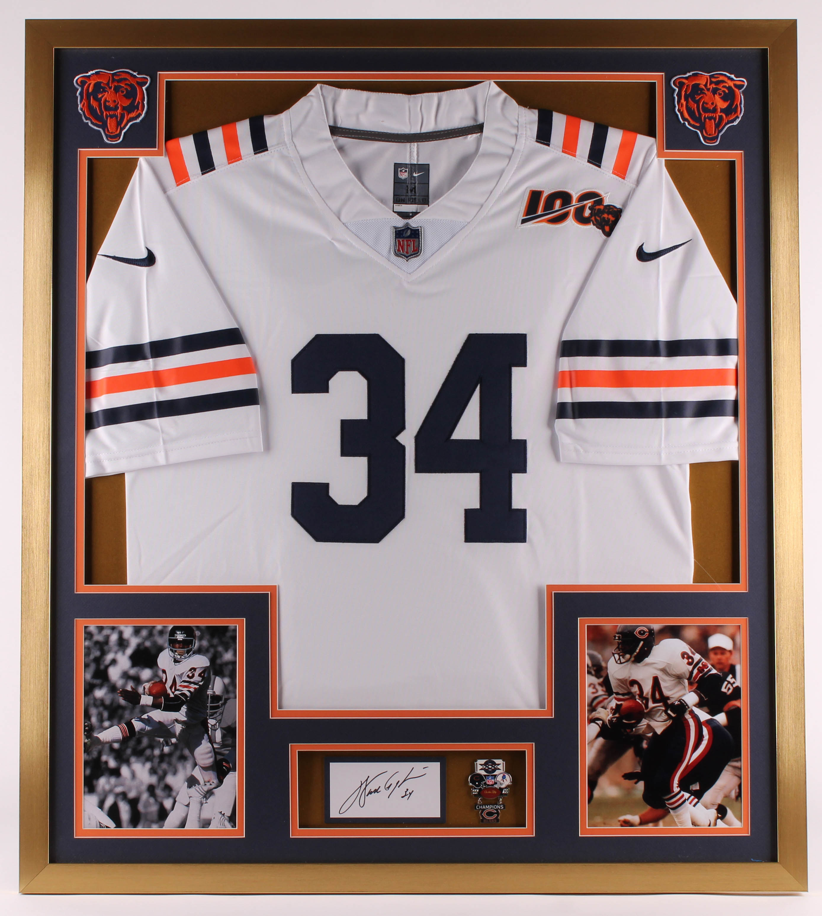Walter Payton Signed Bears 32x36 Custom Framed Cut Display with Super Bowl XX Champions Pin (PSA)