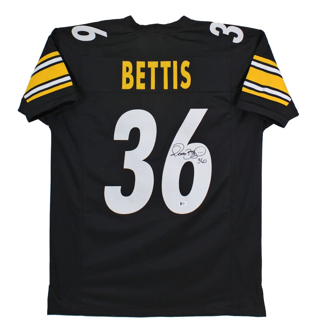 Custom on-field style jersey. Everything sewn on, size XL. Hand-signed by Jerome Bettis (HOF).