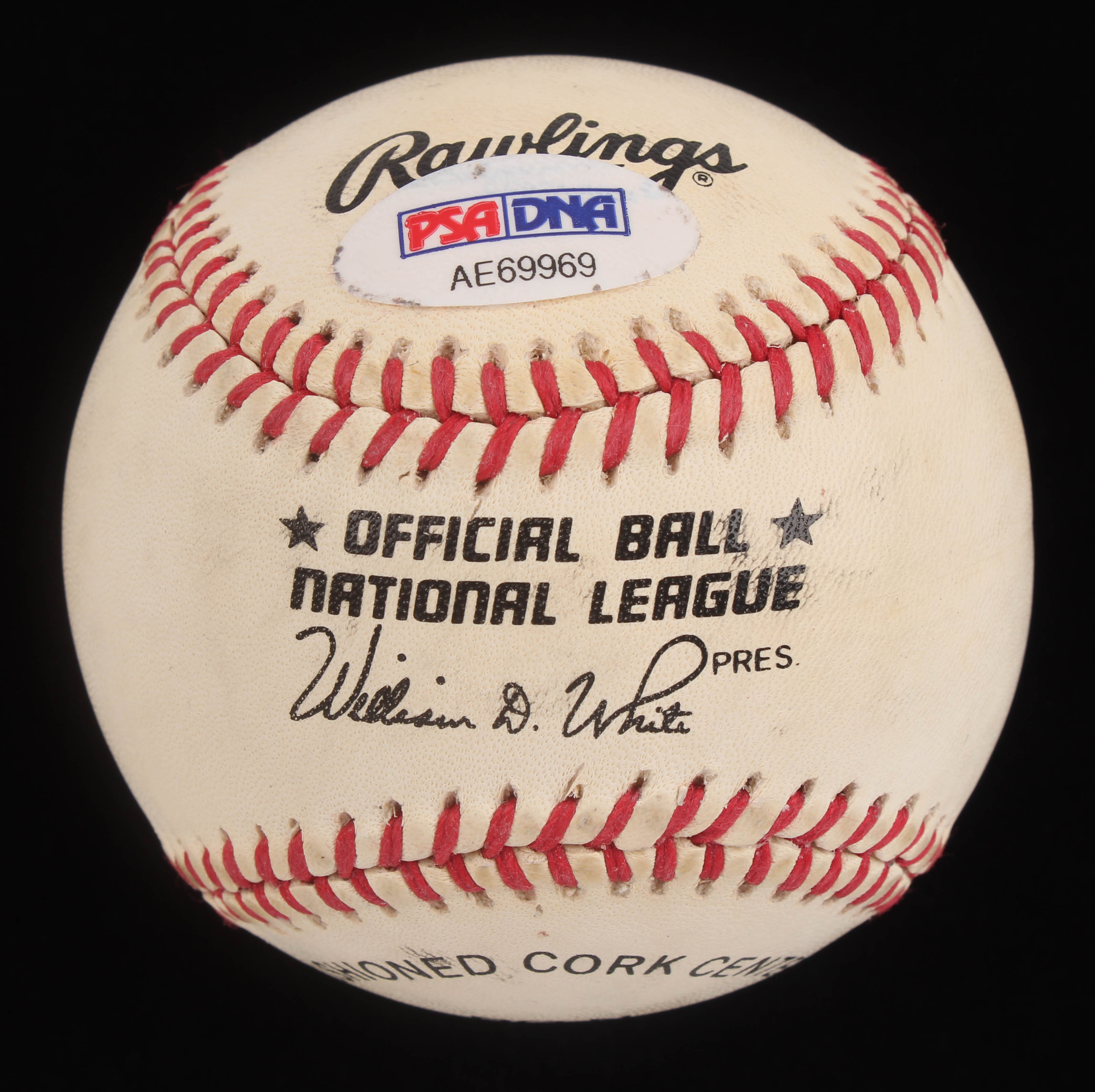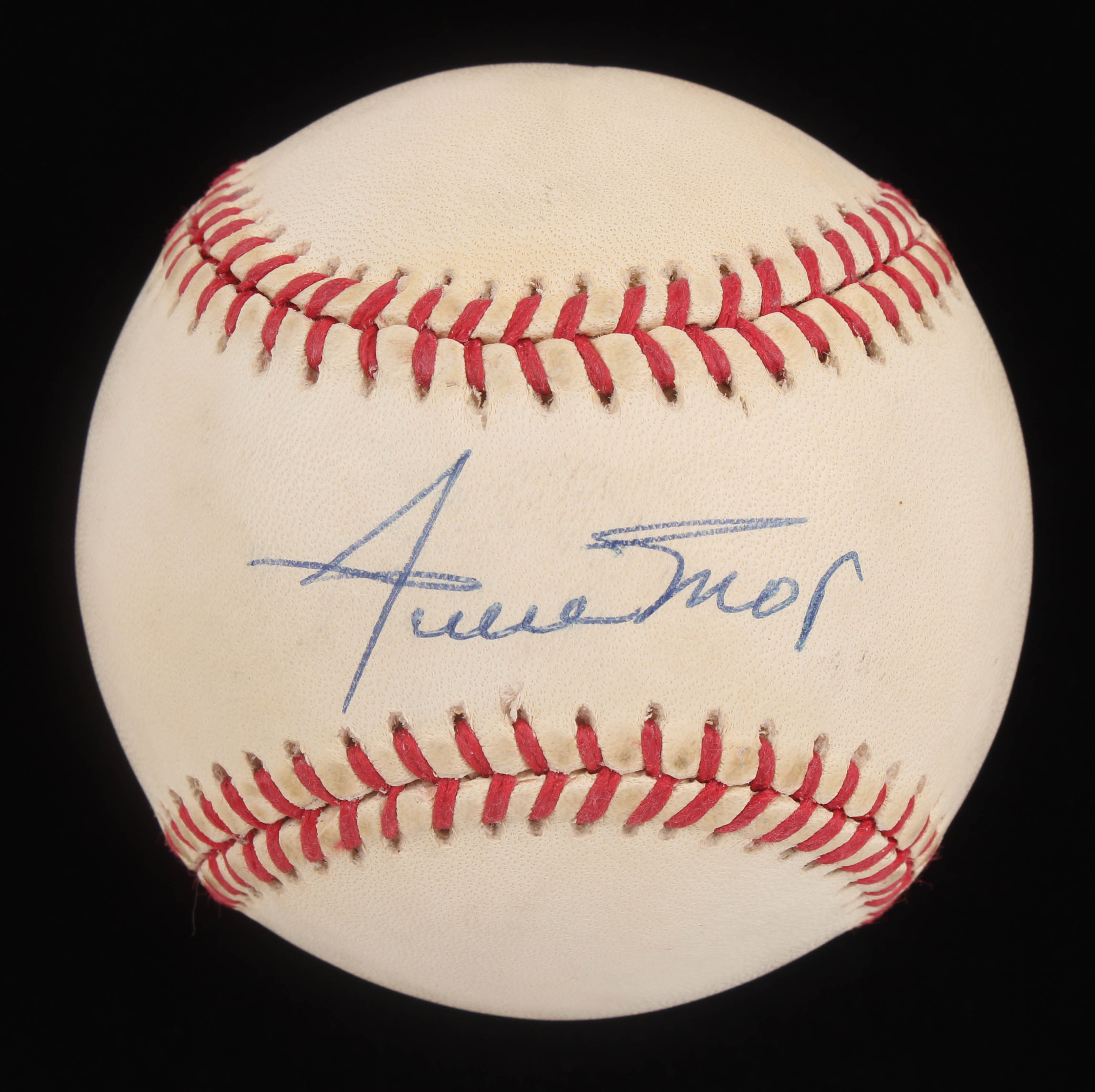 Rawlings Official National League Baseball has been hand-signed in blue ink pen by Willie Mays (San Francisco Giants, HOF). Please note, baseball shows signs of natural toning. Please see photos for details regarding condition.