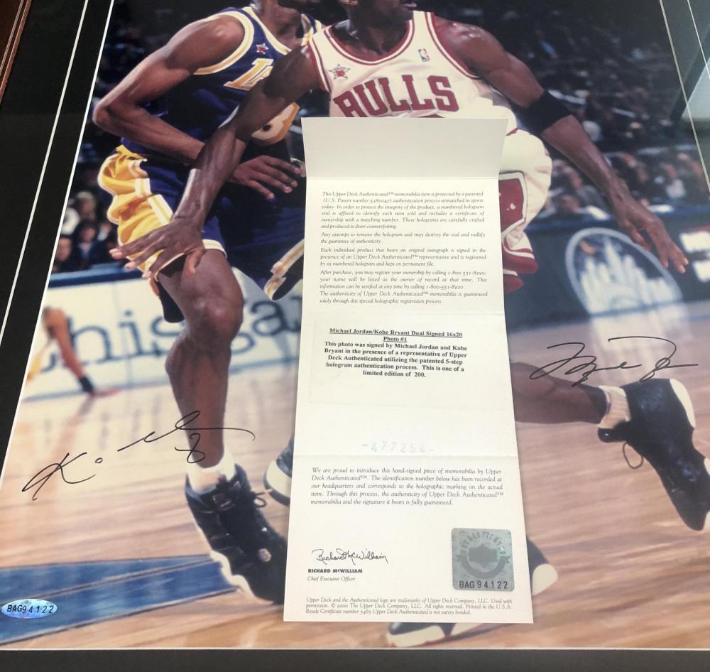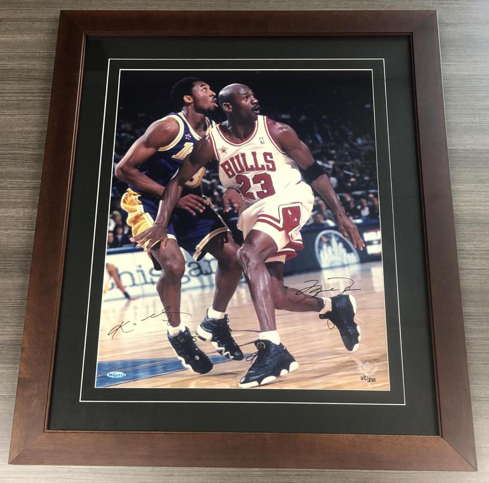 Kobe Bryant & Michael Jordan Signed 23.5x27.5 Custom Framed LE Photo (UDA COA)