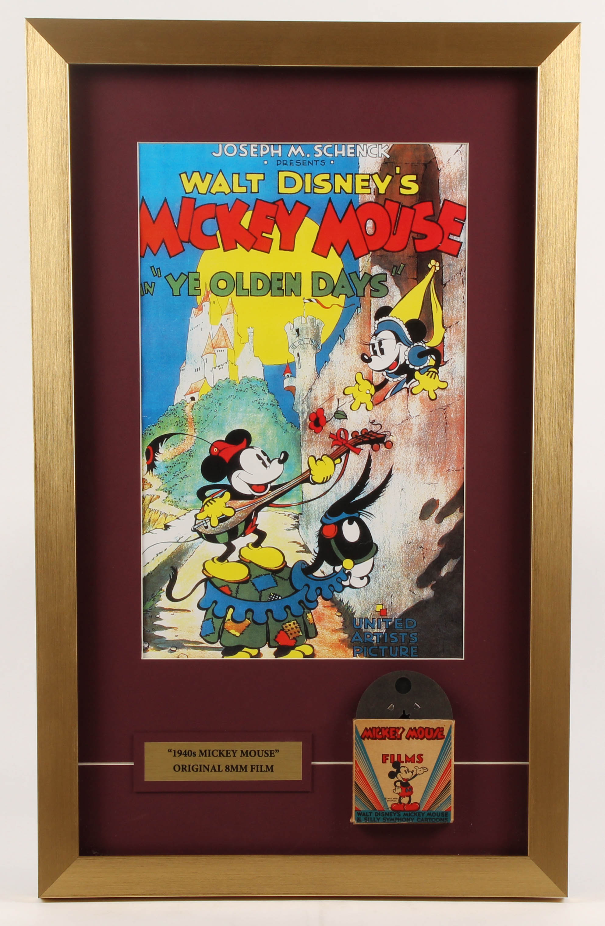 Mickey Mouse "Ye Olden Days" 16x25 Custom Framed Print Display with Vintage 1940's Original 8mm Film Reel