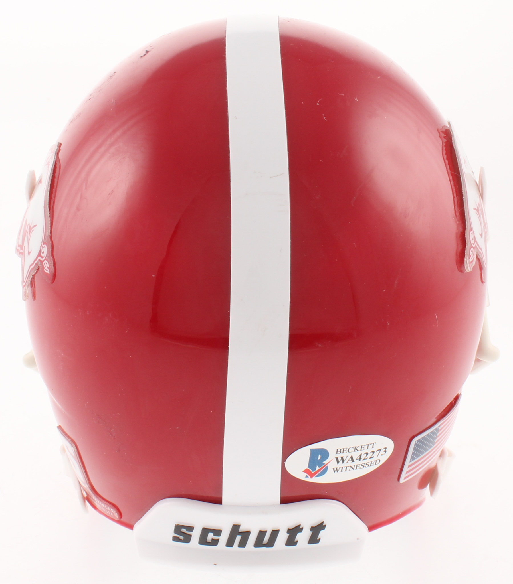 Schutt Arkansas Razorbacks mini-helmet. Hand-signed in white paint pen by Darren McFadden.