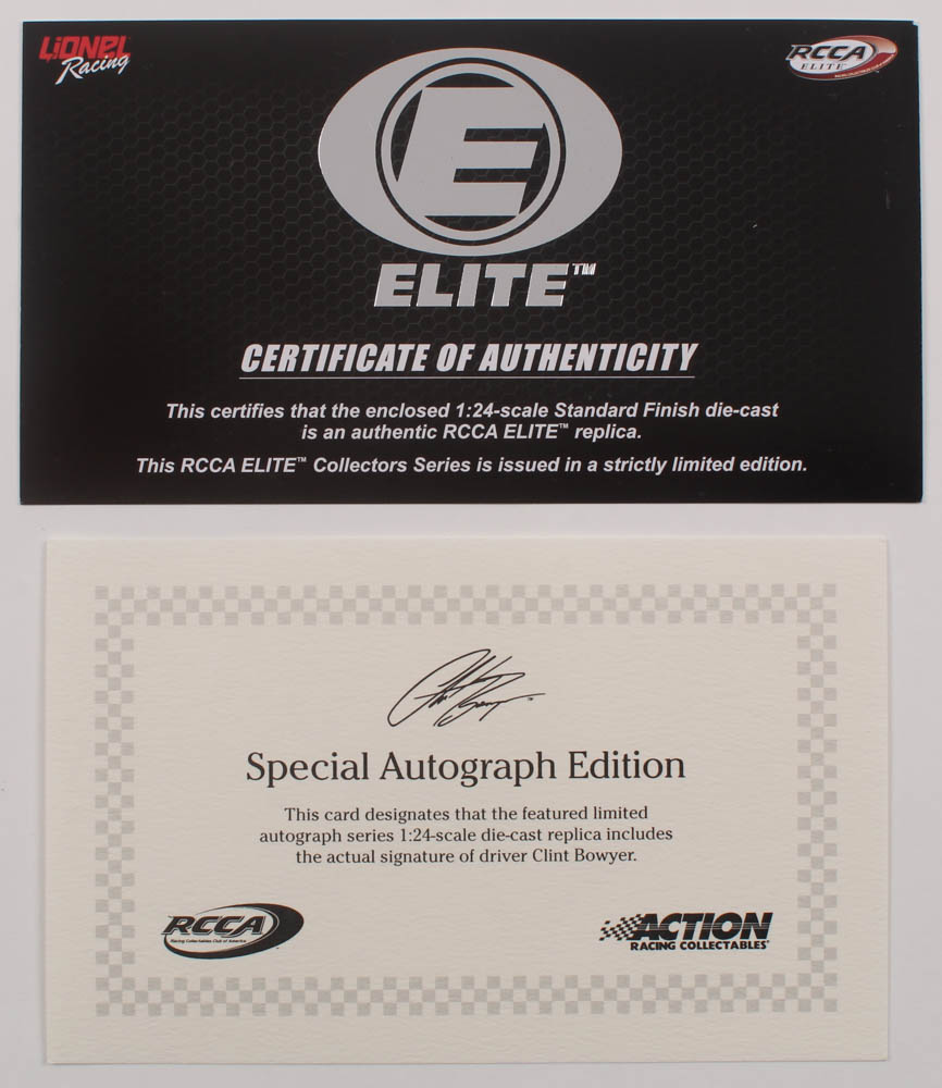 Action Racing Toco Warranty Premium die-cast car hand-signed on the windshield in silver paint pen by Clint Bowyer. The car is limited edition to just 36 produced and includes the original packaging.