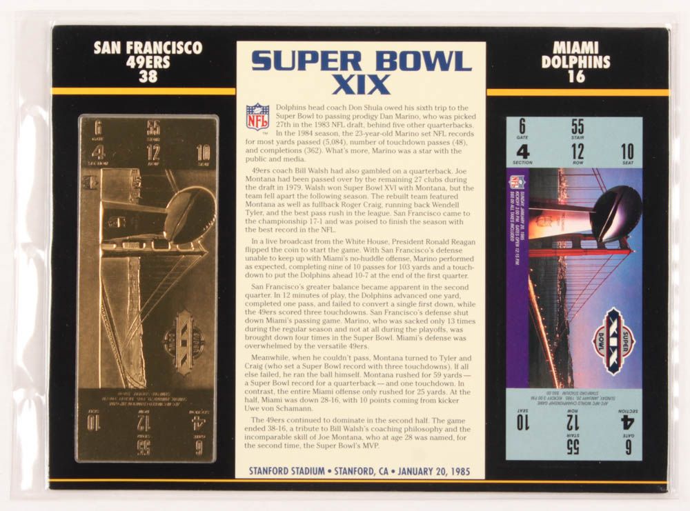 1985 Commemorative Super Bowl XIX Card with Ticket: 49ers vs Dolphins