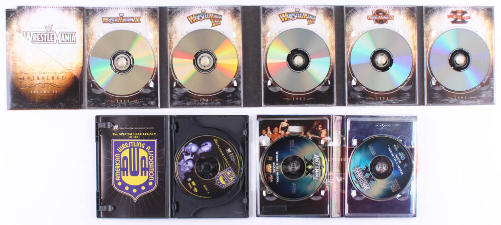 Lot of (3) Wrestling DVD Sets Signed by (8) with Rowdy Roddy Piper, Marty Jannetty, Ric Flair, Kurt Angle & Bobby Heenan (JSA ALOA)
