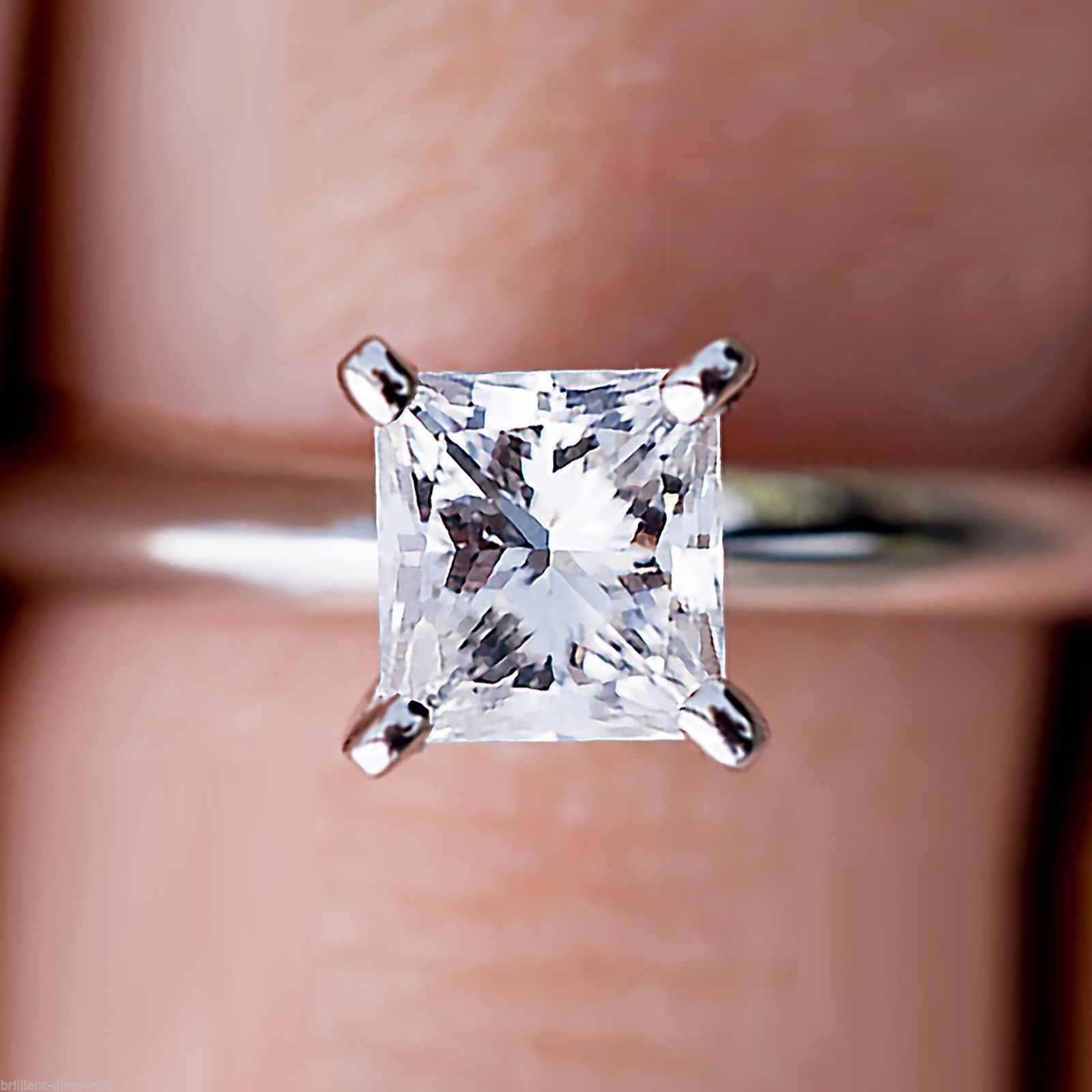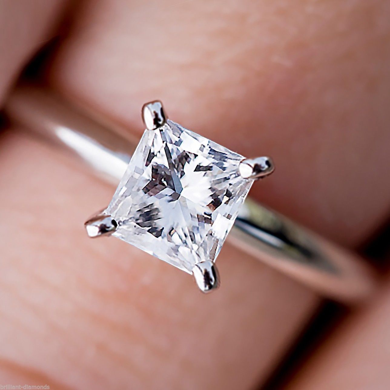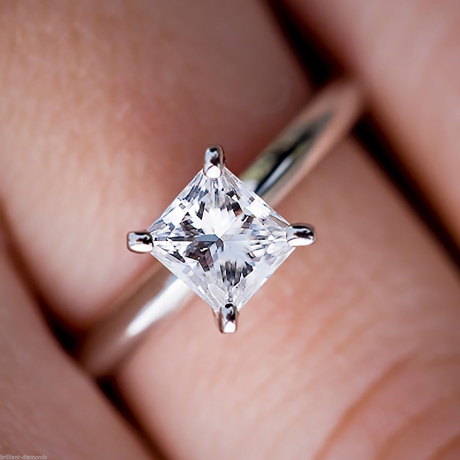 1.0 Carat Princess Brilliant Cut Simulated Diamond Solitaire Engagement Ring Solid 14K White Gold Size 6.5