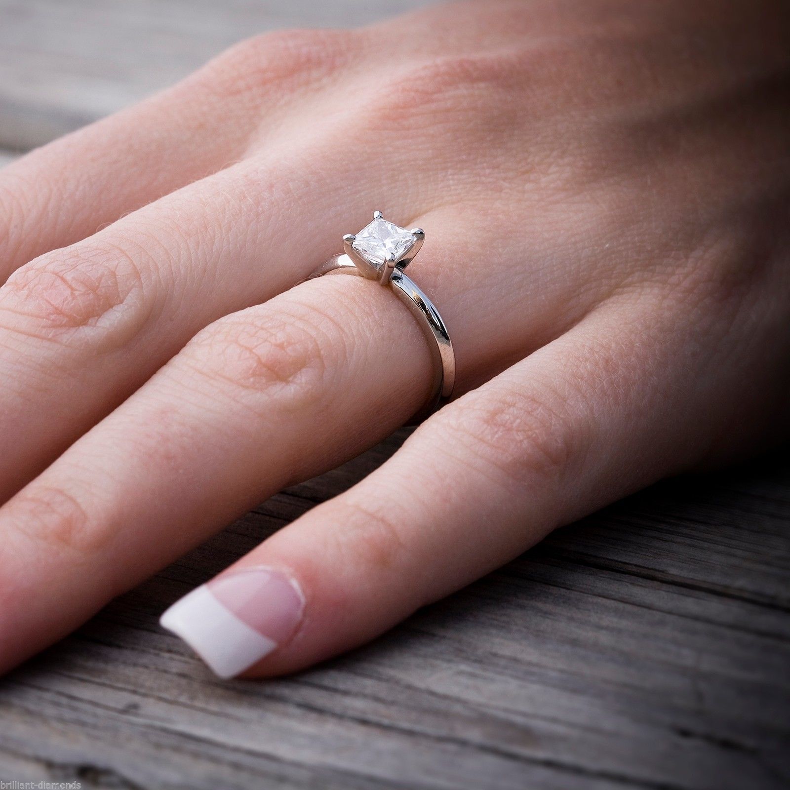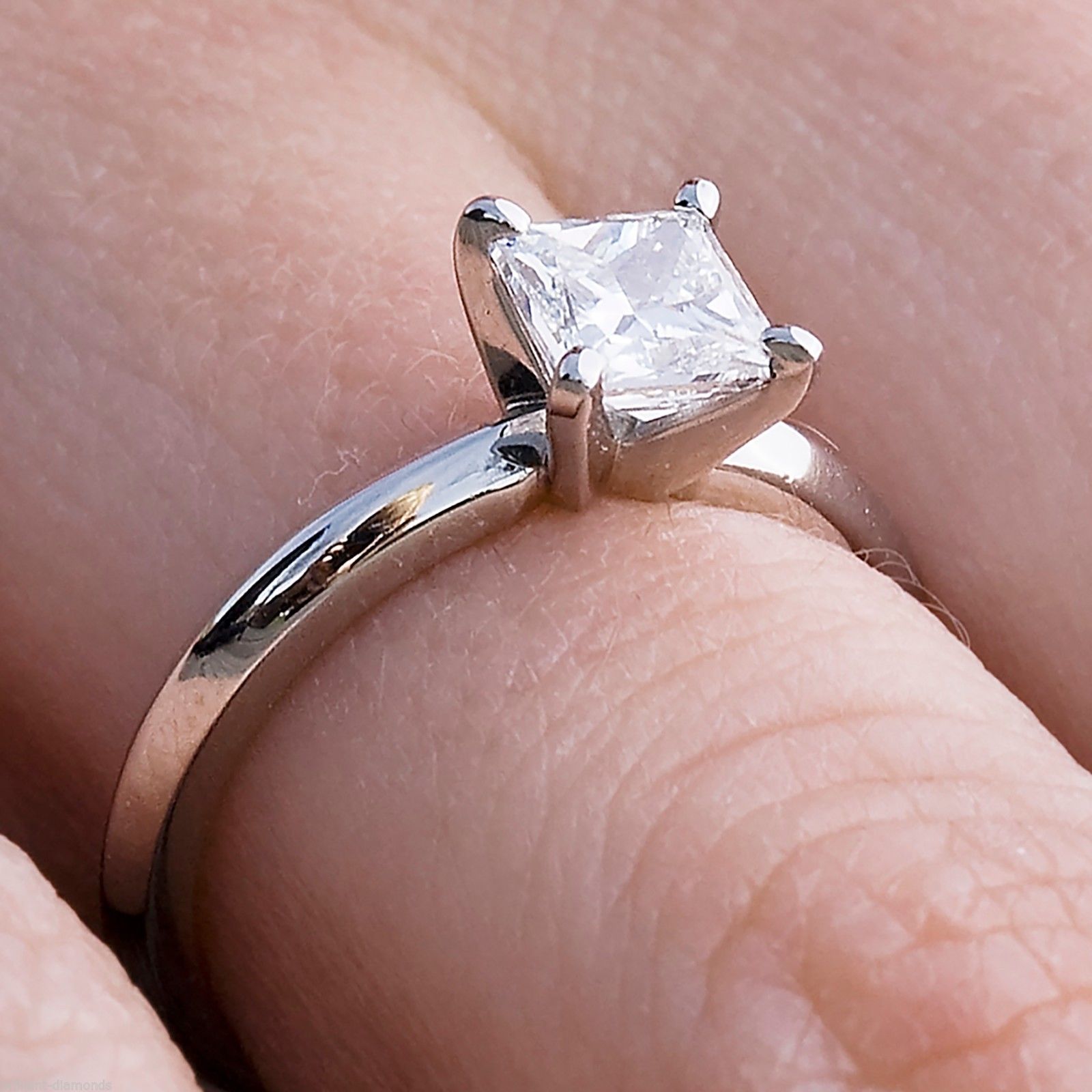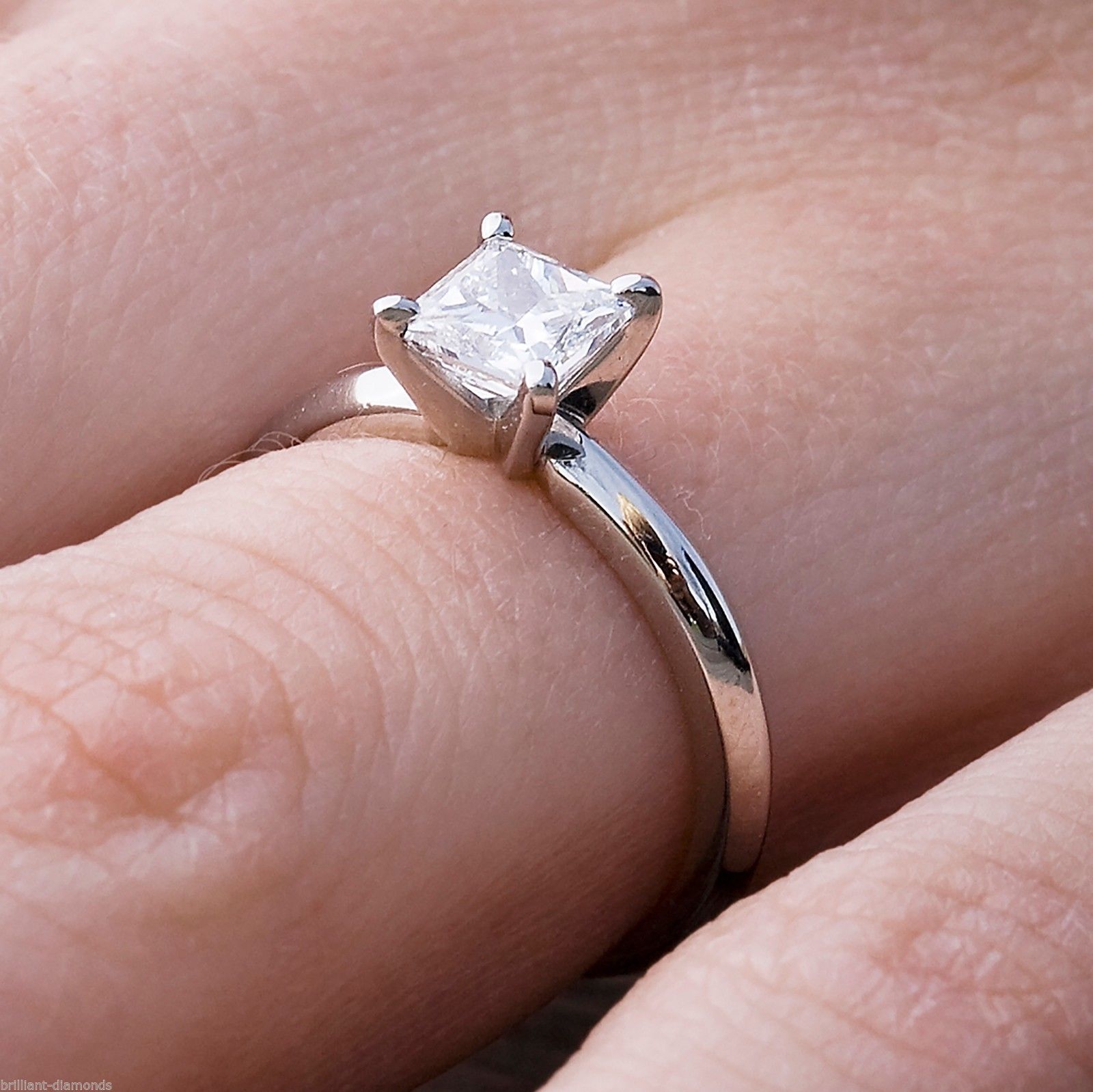 1.0 Carat Princess Brilliant Cut Simulated Diamond Solitaire Engagement Ring Solid 14K White Gold Size 6.5