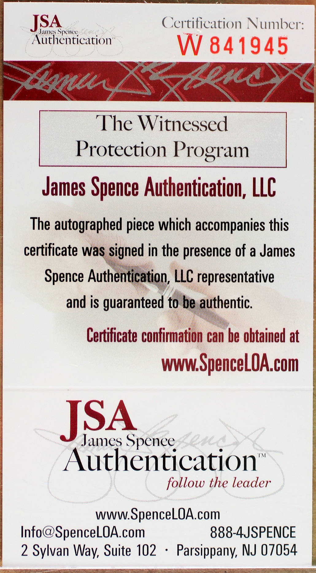 The lot / autograph(s) includes an official James Spence Authentication (JSA) hologram and matching COA for authenticity purposes. The signing of this item was witnessed by JSA.