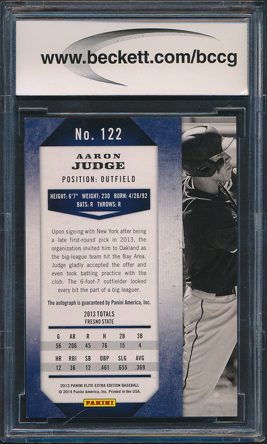 Aaron Judge 2013 Elite Extra Edition #122 Autograph (BCCG 10)