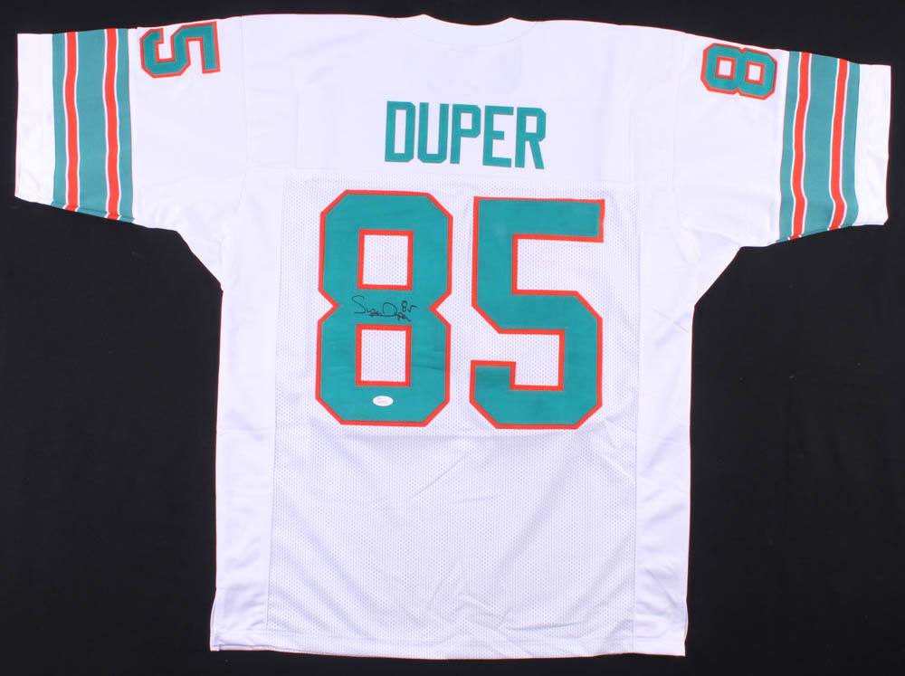 Custom on-field style jersey. Everything sewn on, size XL. Hand-signed in black felt-tip pen by Mark Duper.