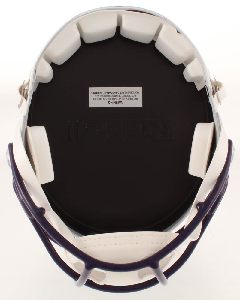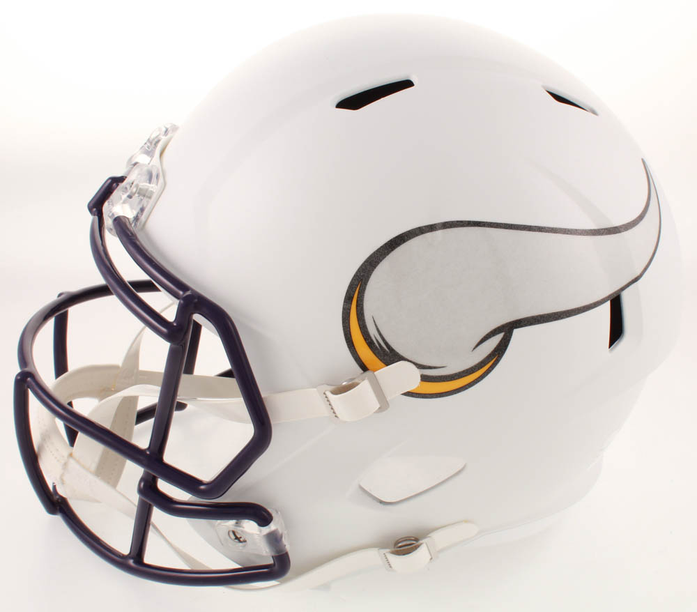 Riddell Minnesota Vikings full-size matte white speed replica helmet. Hand-signed in black felt-tip pen by Adam Thielen.