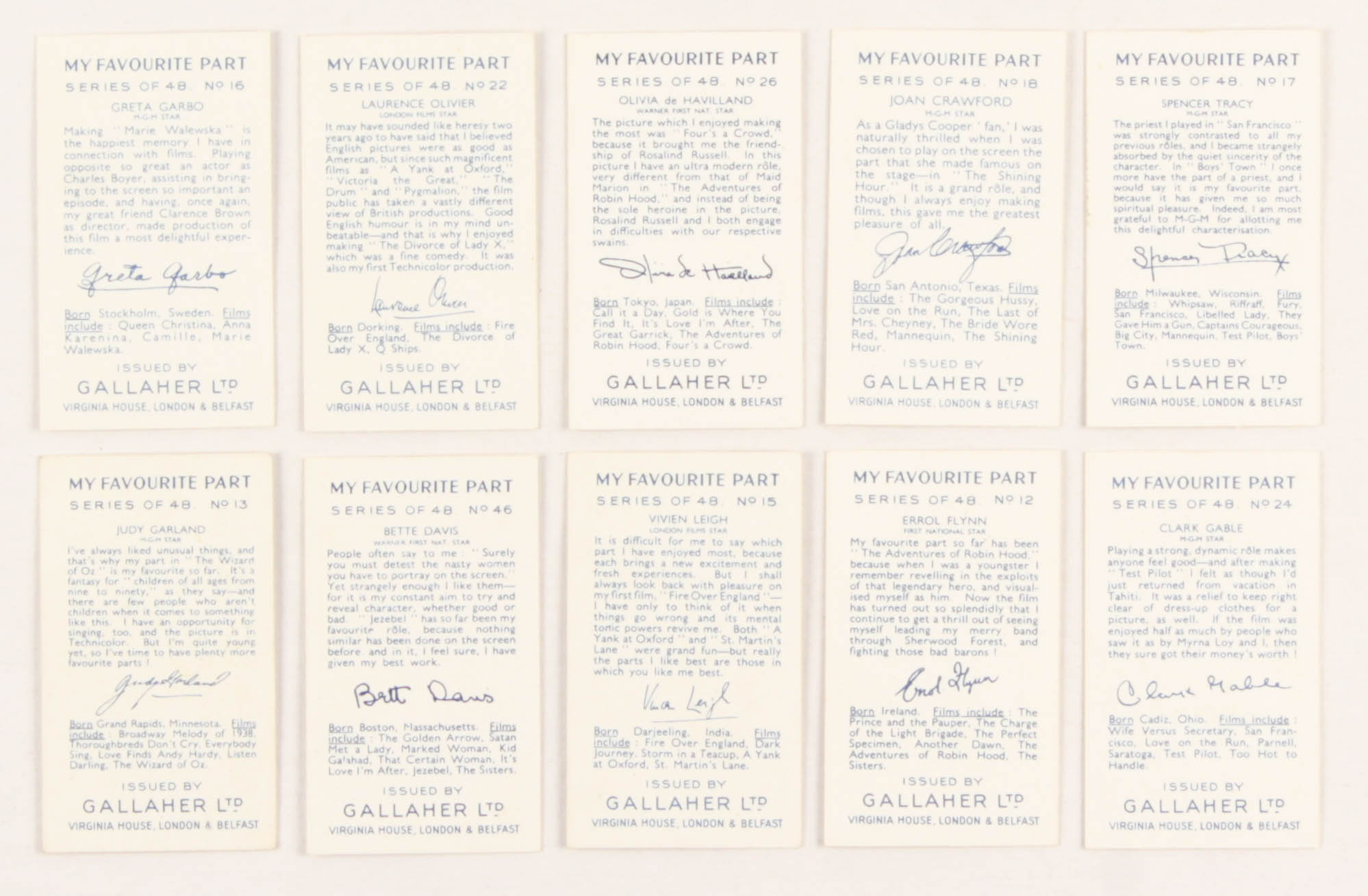 1939 Gallaher "My Favorite Part" Complete Set of (48) Cigarette Cards with Judy Garland, Clark Gable, Bette Davis, Greta Garbo, Joan Crawford