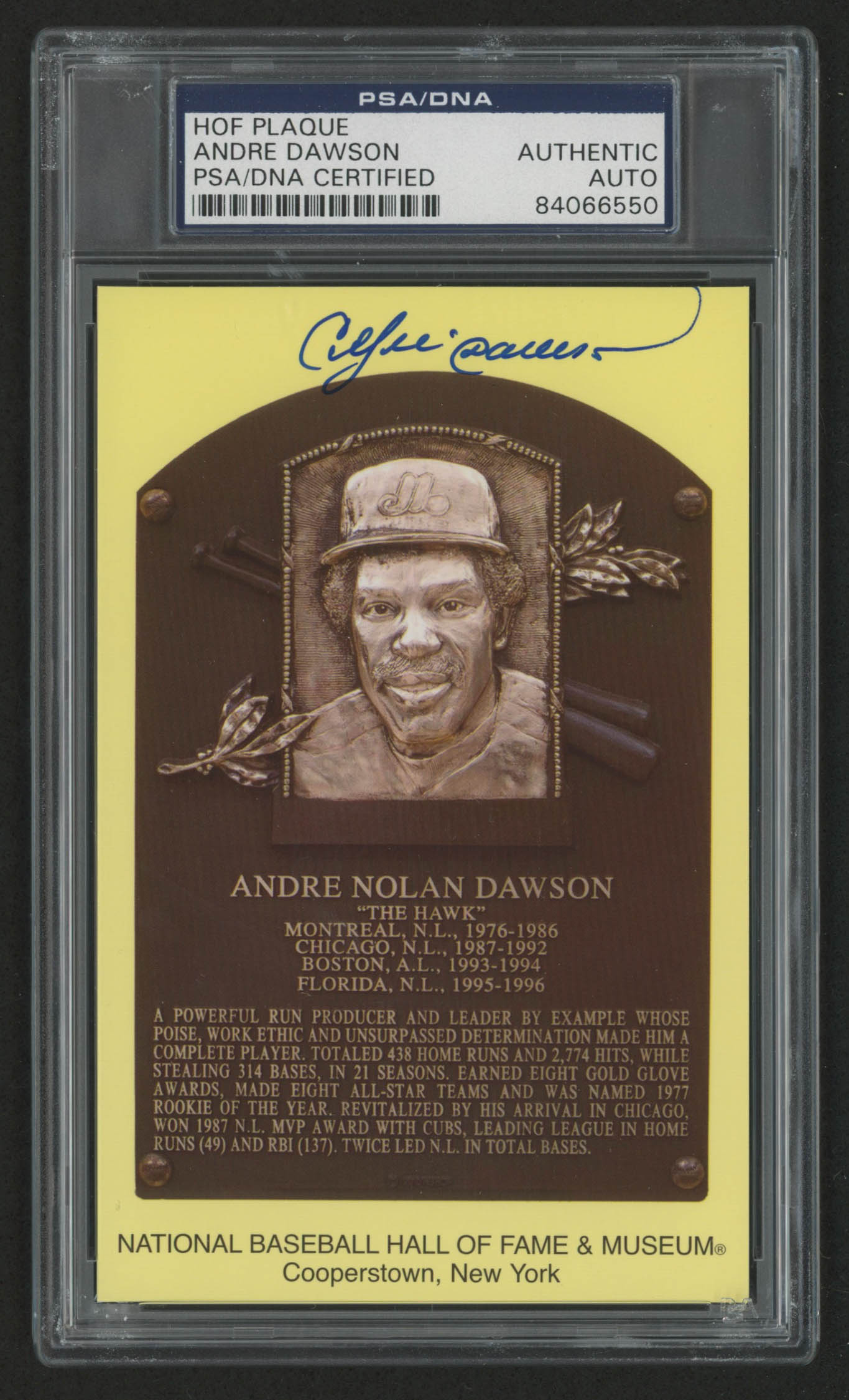 Andre Dawson Signed Gold Hall of Fame Plaque Postcard (PSA Encapsulated)