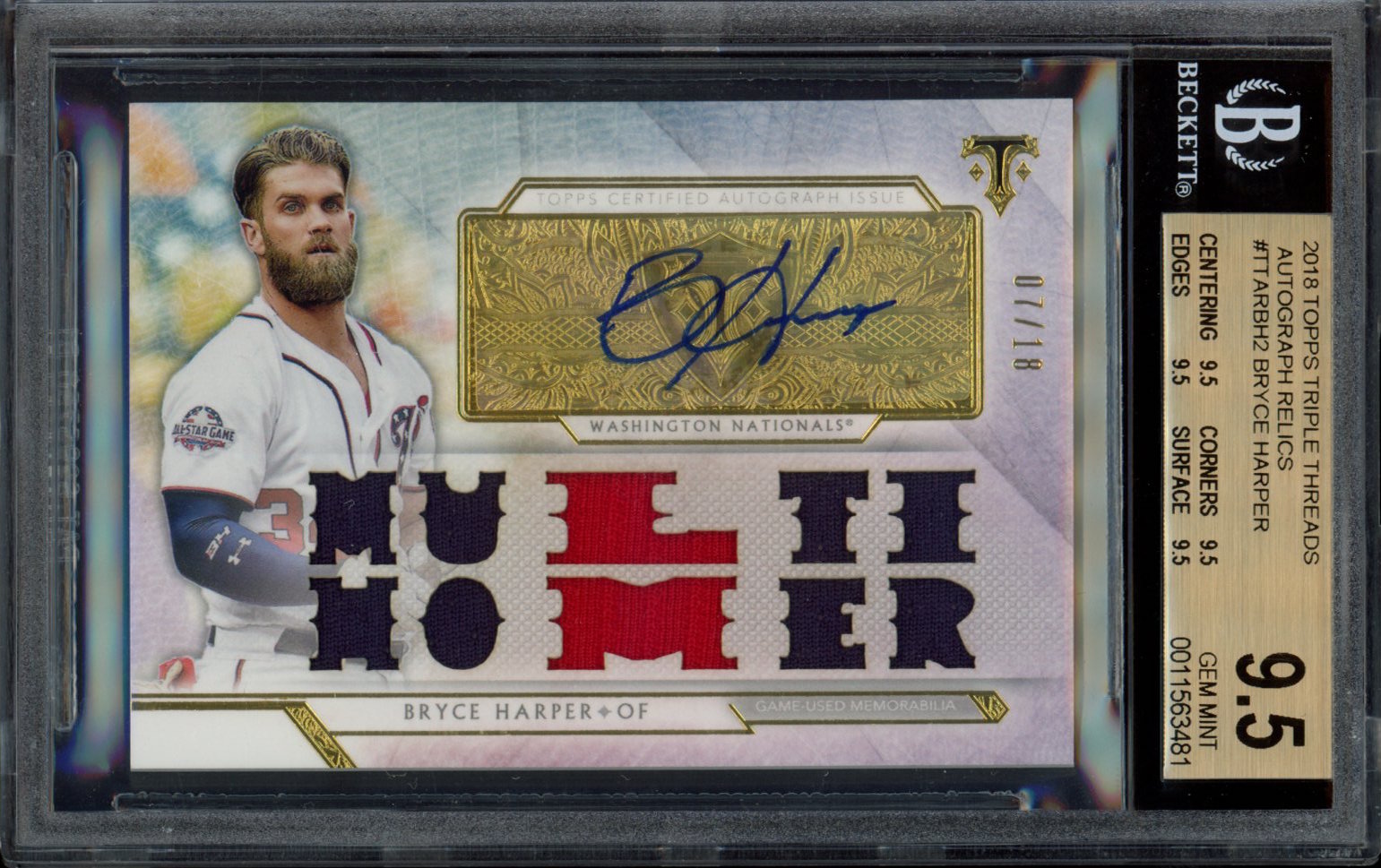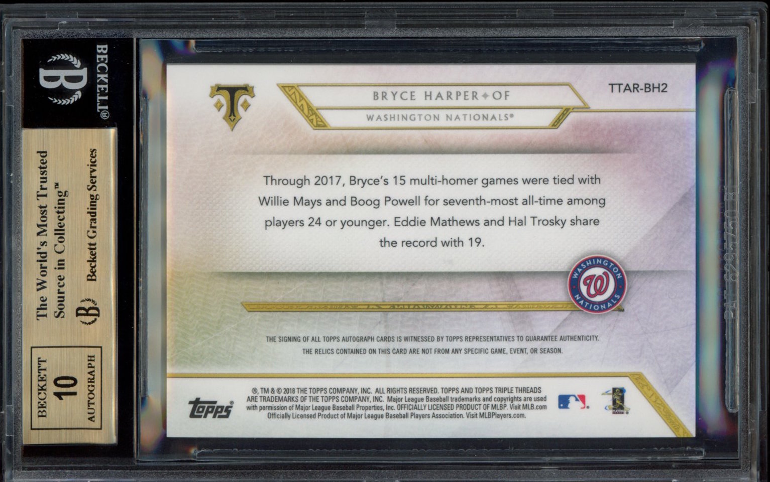Bryce Harper 2018 Topps Triple Threads Autograph Relics #TTARBH2 (BGS 9.5)